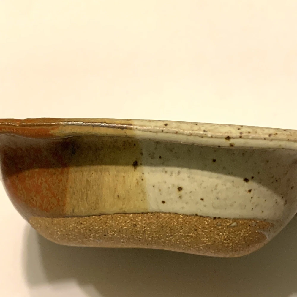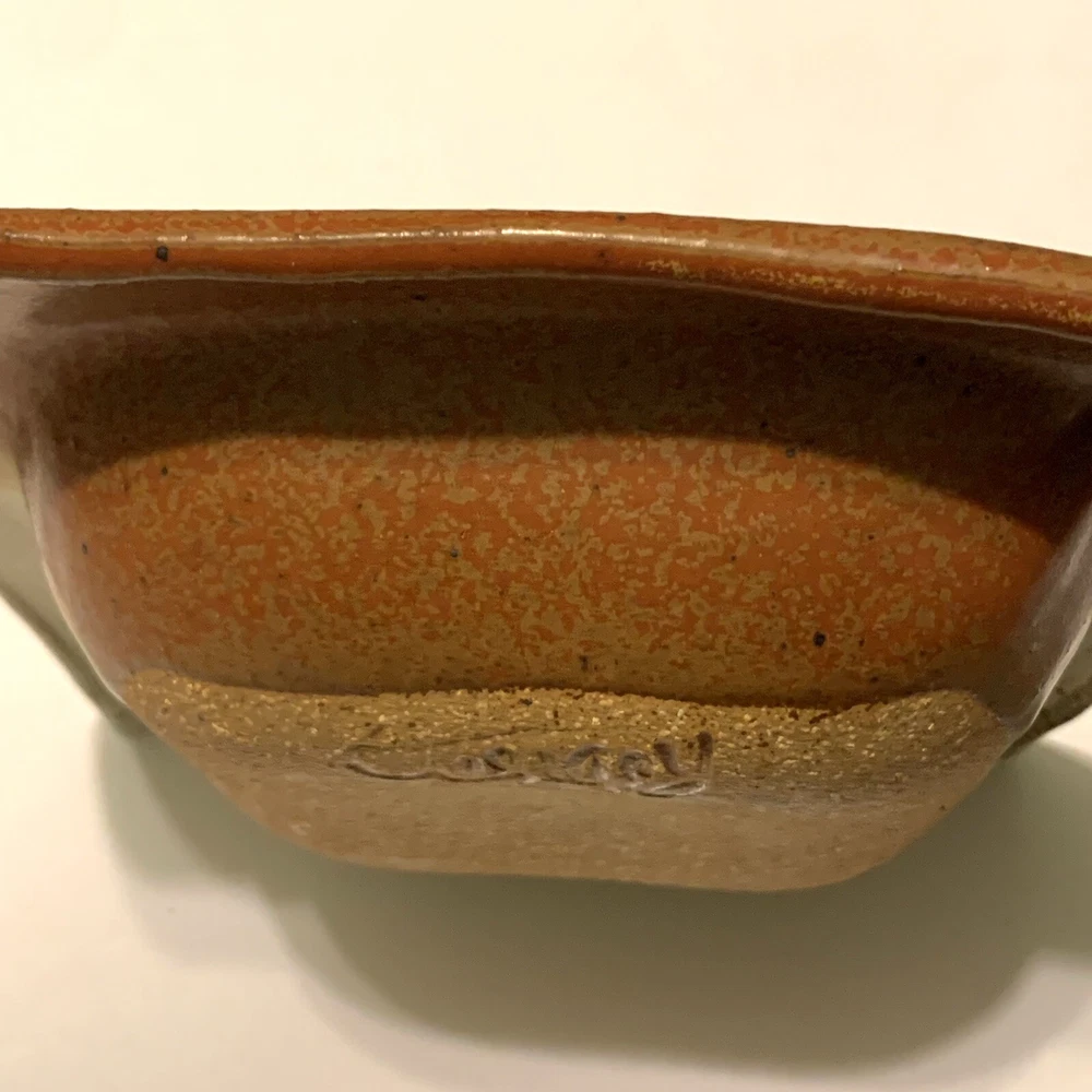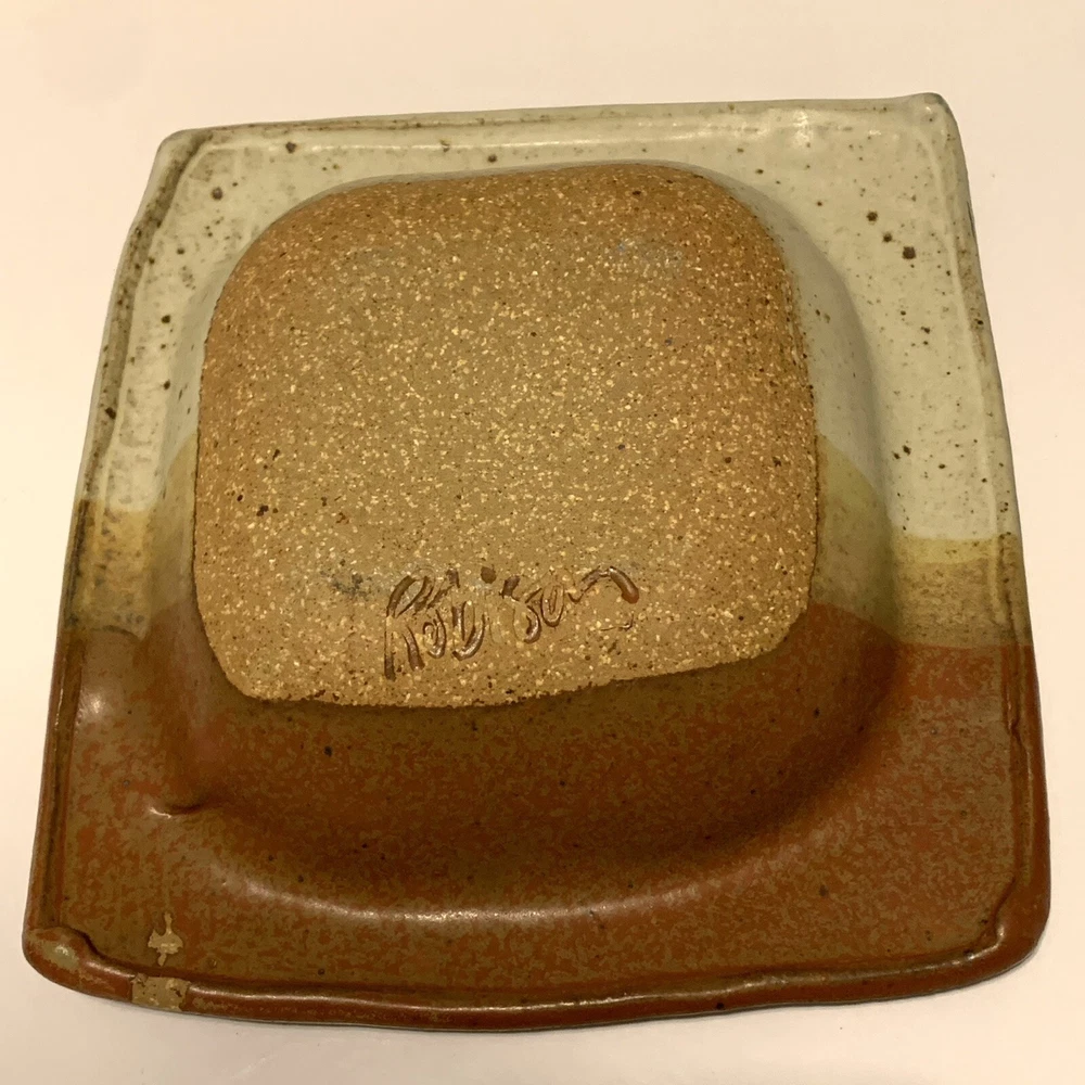 HAND CRAFTED ART STUDIO POTTERY BOWL / DISH SPECKLED SQUARE SIGNED RUST GOLD BEIGE SIGNED ROBISON I have another available. See my other listing. PREVIOUSLY OWNED IT IS IN EXCELLENT CONDITION BEAUTIFULLY MADE WEIGHS 1 POUND. PLEASE VIEW ALL PHOTOS CAREFULLY BEFORE BIDDING OR BUYING. THEY ARE CONSIDERED PART OF THE DESCRIPTION. THE LAST PHOTO IS NOT A CHIP; JUST A VARIATION IN THE GLAZE. THANK YOU FOR YOUR CONSIDERATION!