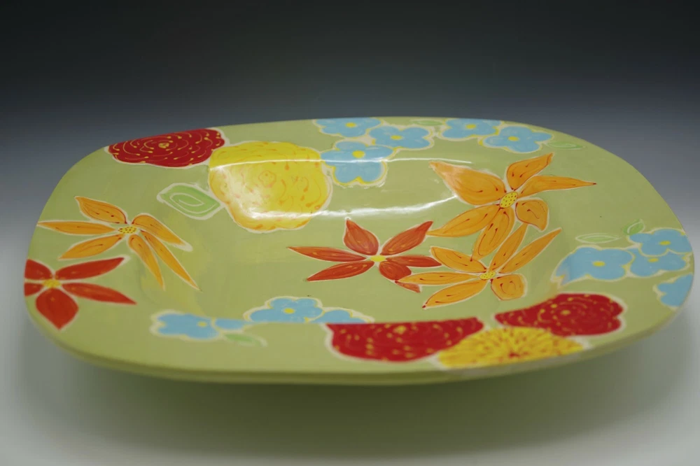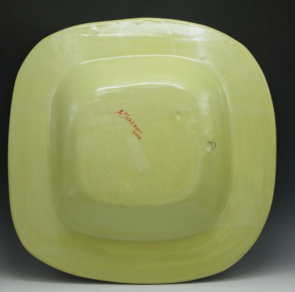 HELLO AND WELCOME TO MY STORE FOR SALE HEATHER SHADRON, STUDIO, ART POTTERY, SIGNED HUGE BOWL, MEASURES: 17.1/2" BY 17.1/2" AND 2" HIGH IN VERY GOOD CONDITION WITH NO ISSUES NOTED DUE TO THE SIZE OF THE BOWL SHIPPING MAY BE HIGH, ANY QUESTIONS REGARDING SHIPPING, PLEASE CONTACT USPS UPST