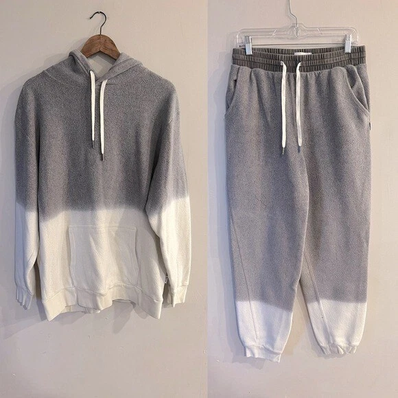 Great condition HELEN OWEN x FEAT Women’s Gray & White Dip Dye Pullover Hoodie & Drawstring Joggers Matching Set Hoodie is an XL and Jogger are a L AK125A 12025