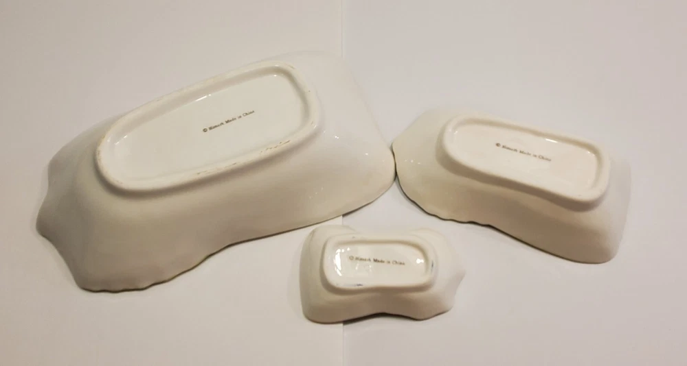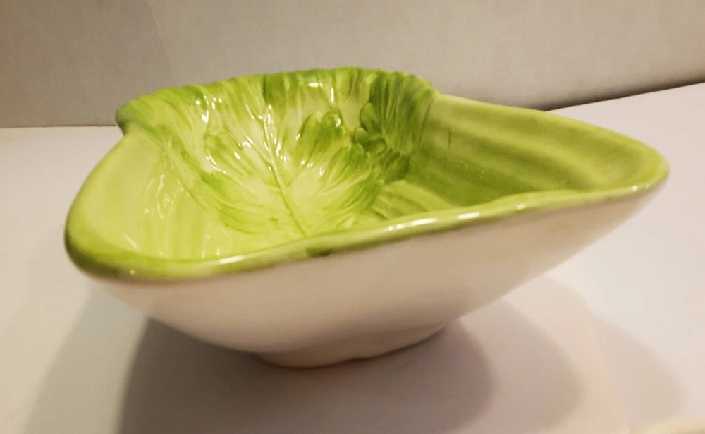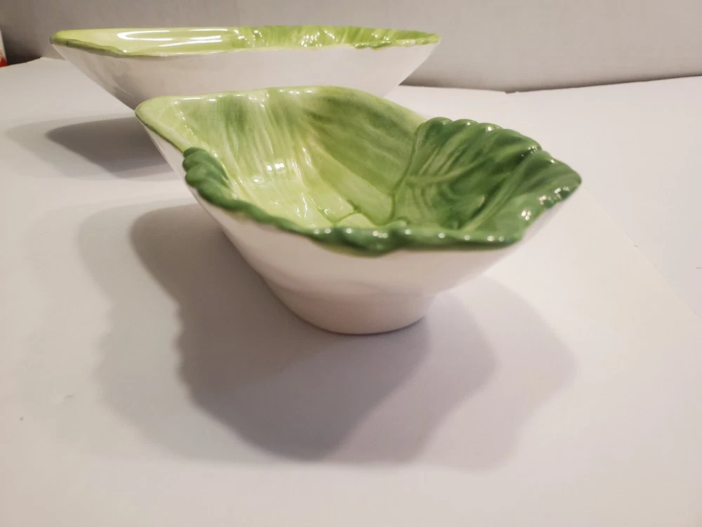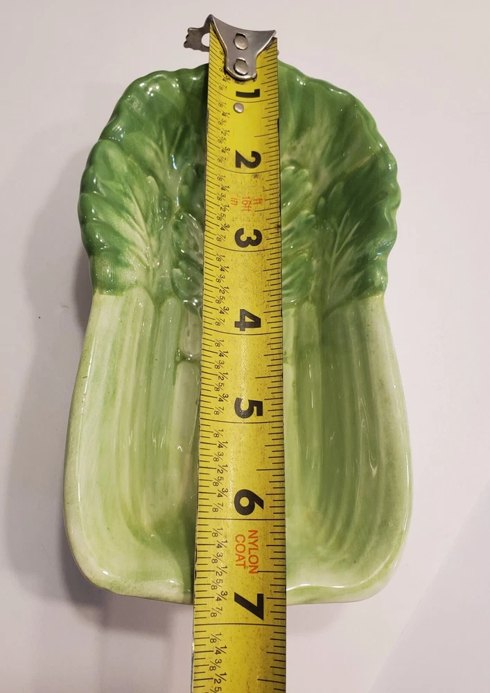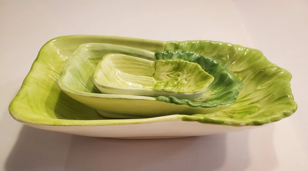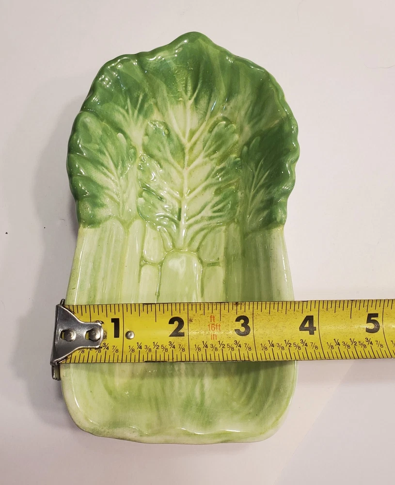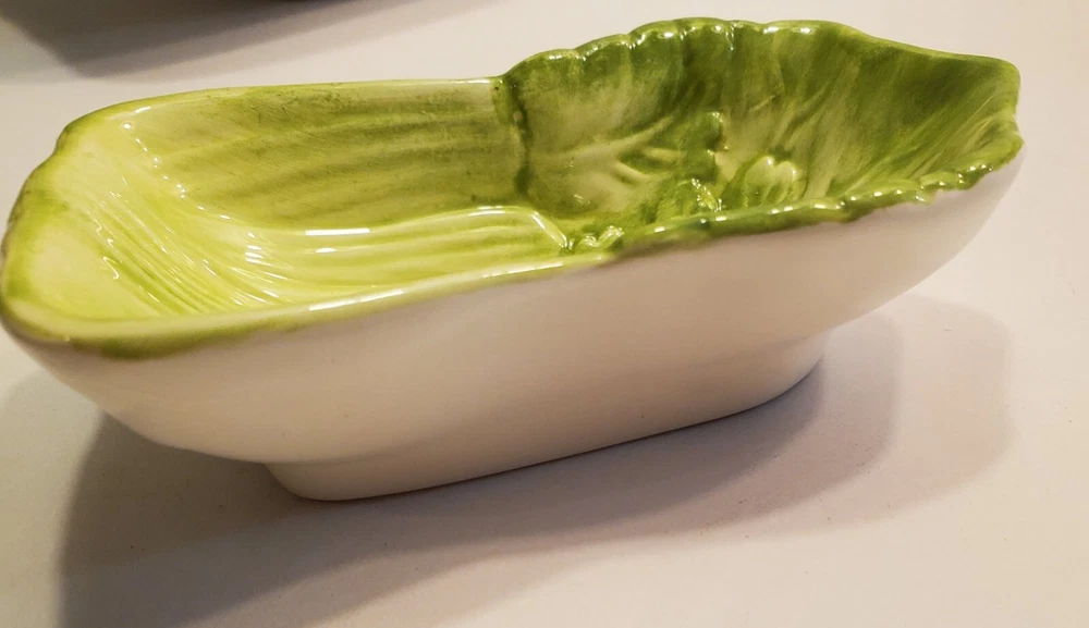 This three-piece set of HIMARK celery shaped bowls is a vintage addition to any collection. The glossy green bowls are stackable and decorative, perfect for all occasions. Made of ceramic art servware, they are original and studio crafted from China. Each bowl is oblong in shape and features a celery theme, making them a unique addition to any dinnerware collection. They are printed with a backstamp and were produced using the late 20th-century technique of studio crafted ceramics. These bowls are hand wash only and are perfect for serving your favorite dishes. ☆☆☆☆Clean and from a Smoke-free home.Please look closely at all of my photos to make sure that you like what you see and see exactly what you will be receiving. Photos are of the actual item that you will receive if you decide to purchase this from me. Any flaws noticed by the seller (including smoke, odors, large rips, tears, holes, stains, or noticeable repairs) will be noted in the item description. I do my best to look over the items and describe anything I think is noteworthy. However, I am human, and there may be something that I have overlooked. If you receive an item and it doesn't meet your expectations, please contact me prior to leaving feedback -- I will be happy to work something out with you!!!!! IF USPS IS SLOW PLEASE KNOW THAT THERE IS NOTHING I CAN DO ABOUT THAT AND IT IS OUT OF MY CONTROL. I DO NOT SET THE ESTIMATED DELIVERY TIME ON MY LISTING, IT IS DONE AUTOMATICALLY AND I DON'T THINK TO CHANGE WHATEVER POPS UP BECAUSE I USUALLY SHIP OUT AS QUICKLY AS I CAN ANYWAY! Thank you for looking at my listing and for taking the time to read this description. PLEASE Check out my other listings if you have time and don’t forget to hit the follow button so you can see everything I post, I would greatly appreciate it. THANK YOU VERY MUCH!💞😊