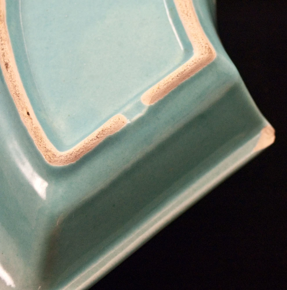Up for sale is a chip n’ dip platter in very good condition. The diameter of the platter is 16 ¼”. It is a true turquoise color with no green tint. Defects: A small unglazed spot on one of the trays but would be covered by the adjacent tray’s lip Three lines that were not glazed on the underside of a tray A small glazed fleck on the underside of a tray A small chip on the underside of each of the three trays Condition: My aim is to grade conservatively. Listed below are grades and their corresponding meaning that I use in the item description and/or title: New : An item that has never been used: sealed or unsealed with label/tag. An item that shows no signs of ever being used. NOS (New Old Stock) : The item doesn’t show wear in areas which normally show wear when used but does show very minor wear from storage. Like-new : The item looks brand-new but on closer examination there may be one or two very minor marks that show that the item has been used. Excellent : Very minor wear which is not distracting. It shows signs that it was used once or twice. No writing/marking/stains are present. Very good : The wear that is evident shows that it was used occasionally and has been very well taken care of. Good : A well-used item that may have considerable cosmetic wear and/or writing, marking, or stains but which the quality of its use does not suffer. Fair : Evidence of abuse to the point where I feel that the quality of its use probably suffers slightly but not to the point of it being noticeable. It may show signs of being repaired in the past. Shipping & Handling: I usually ship items out the same day if payment is received by 4:00 pm PST (M-F) USPS and FedEx and by 3:00 pm PST (M-F) UPS. Never pay any handling charge. I use “green” packaging (either reused or purchased second-hand). Let me know if you want to pick-up the item and I will change the listing to “Pick-up Only” and will deduct what the shipping would have been from the total price if listed as “Free Shipping”. Small and medium size packages I usually ship USPS Ground Advantage. Packages that are large/heavy I will ship through Fed Ex Ground/Home Delivery or UPS Ground depending on which is cheaper. Insurance: Insurance is provided at no charge on items over $100. Payments: Payments through PayPal only. Please send payments within 3 days of auction closing time. International Orders: Customs forms are always filled out accurately. International customers are responsible for all appropriate import duties and fees. International First Class Mail packages can take up to 4 weeks for delivery depending on weather, etc. Please be patient. Returns: You may return items for any reason within 30 days of delivery for a full refund of the purchase price. The item should be returned in the original packaging if possible. I will pay the shipping costs and return shipping costs. If the item has been damaged/lost in transit I will refund your purchase price and postage. Feedback: I leave positive feedback at the time I have received cleared payment from you. I want you to be 100% happy with your order. When you receive your order, please take a moment to leave me positive feedback. My 5 star rating and your positive feedback is important to me, appreciated, and a vital part of my success. Neutral and negative feedback is permanent and harmful.