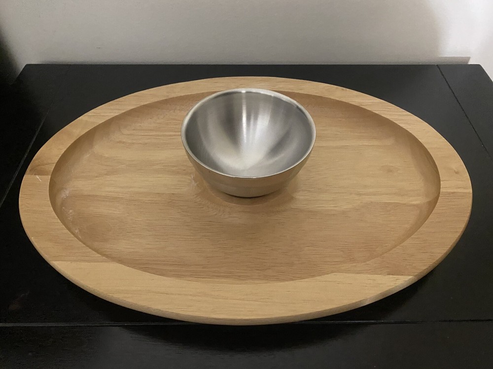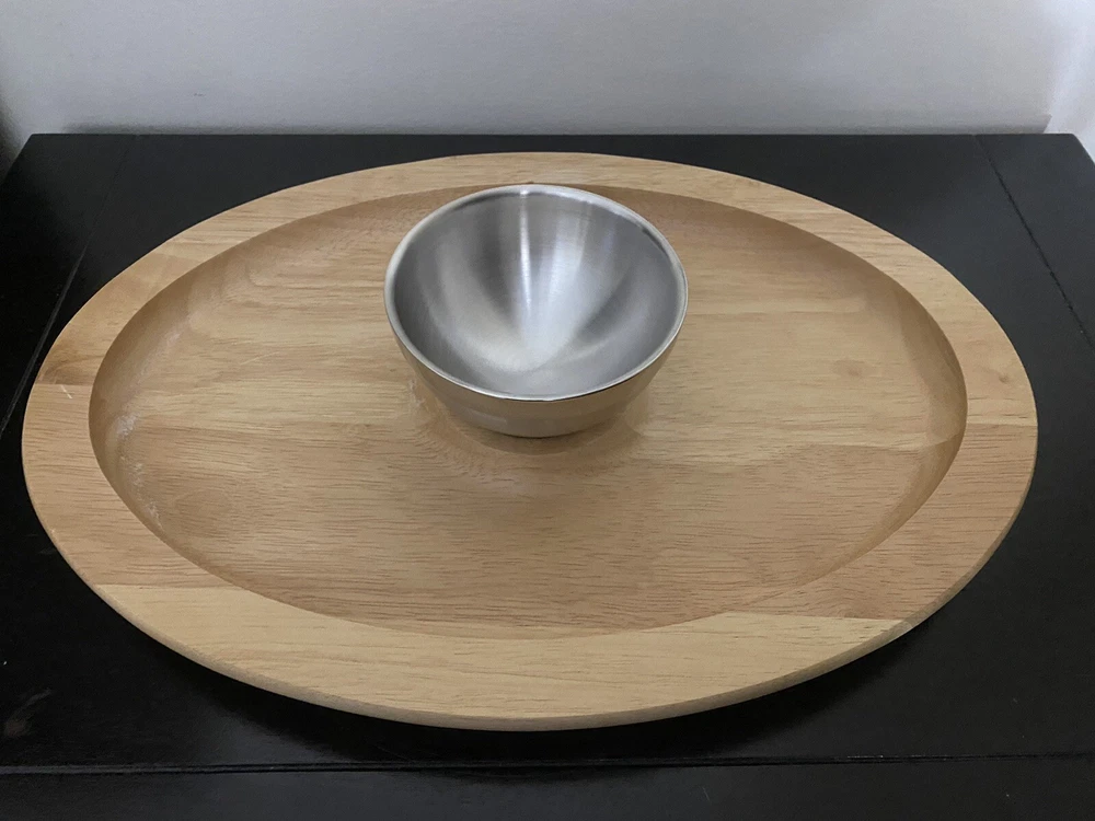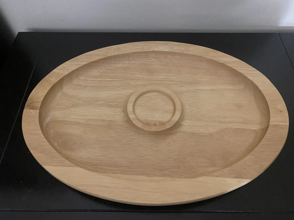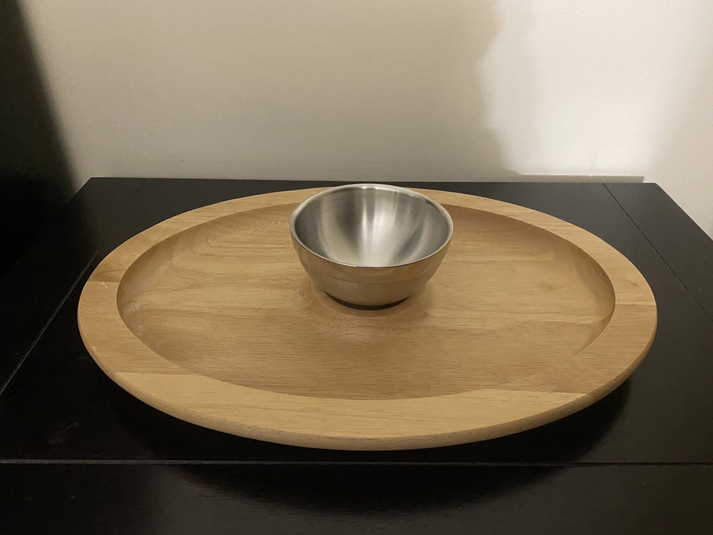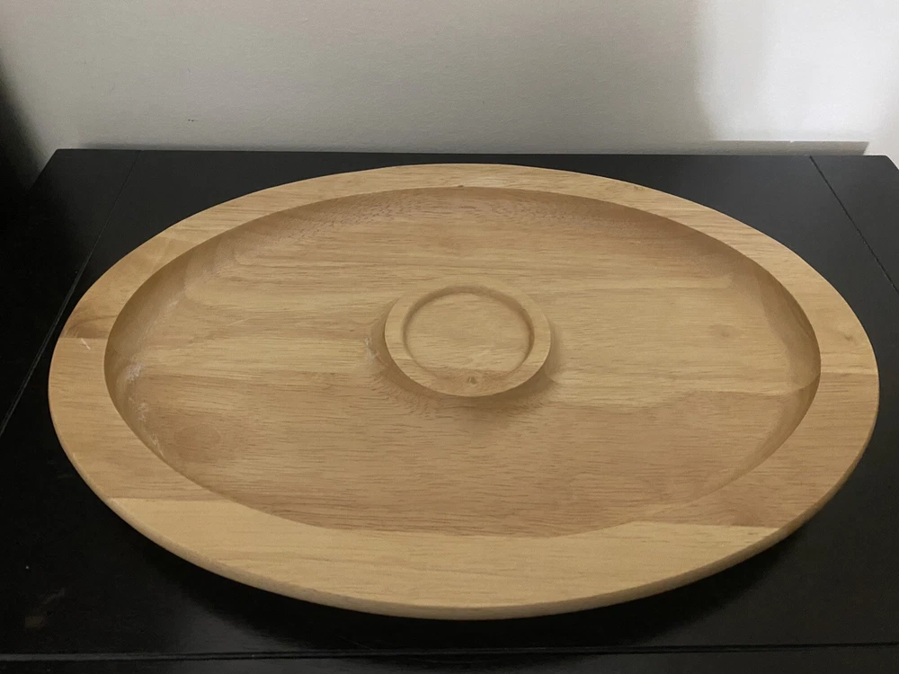 HOFFRITZ CHIP AND DIP LARGE WOODEN SERVING PLATE TRAY PLATTER. THE PLATTER IS 17" Long X 12" Wide BOWL IS 5" DIA. X 2.5" Deep...