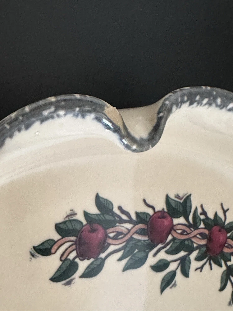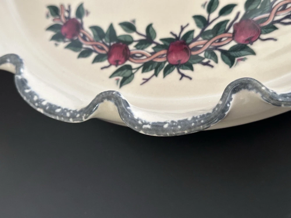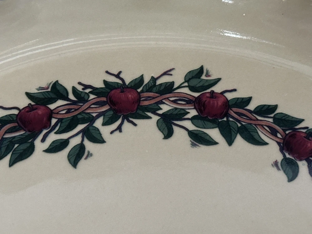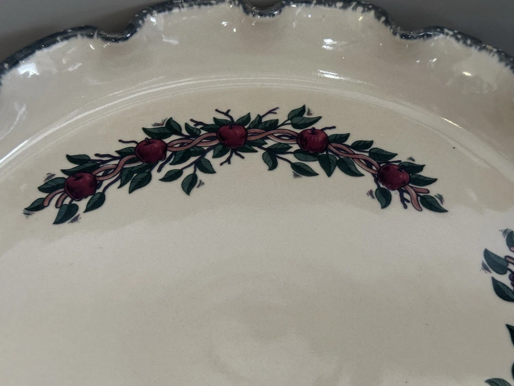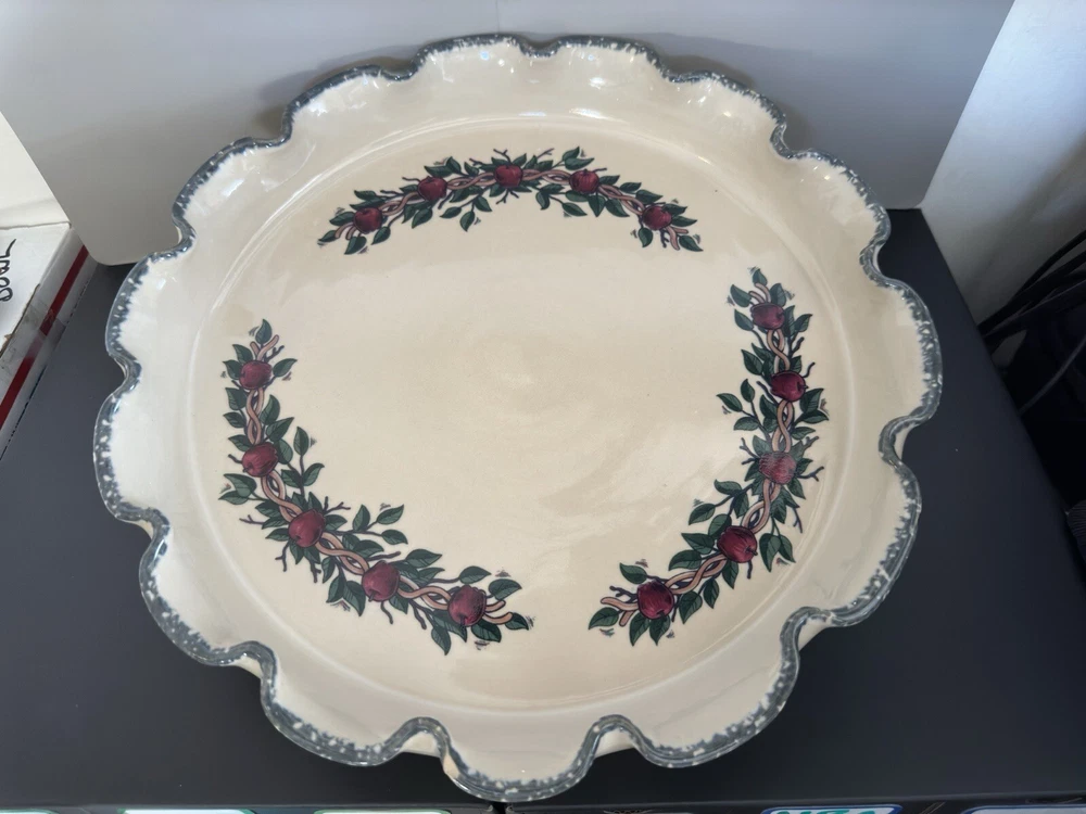 This HOME AND GARDEN PARTY Exclusive Apple Serving Platter is perfect for any occasion. The round, multicolor platter measures 12.5 inches in diameter and 1.5 inches in depth, making it a great size for serving chips and dip, veggies, or any other snacks. The platter is made of durable stoneware and features a glossy finish for a stylish touch. In addition to being oven, refrigerator, microwave, and dishwasher safe, the platter also includes a convenient tray for easy serving. The Apple pattern and Cottage style make this platter a charming addition to any kitchen or dining room. Whether you're planning a party or just looking for a beautiful way to serve your snacks, this HOME AND GARDEN PARTY Exclusive Apple Serving Platter is the perfect choice. CONDITION OF ITEMS LISTED: 1. Please inspect all pictures before buying this item to ensure you are going to be satisfied with your purchase. Photos will show any blemishes or imperfections on Items that are listed. 2. EVERY photo shown has been taken by us using our own equipment. Every Item photographed is the same Item you will receive. You can trust that any Item you are bidding on or purchasing is the exact Item pictured. 3. Used items may/will have minor cosmetic scratches, scuffs or utensil marks. Any chips, cracks or more significant damage will be mentioned in the description. 4. No batteries are included in any item. 5. Please feel free to ask any questions you may have concerning any Item listed. We will find the answer if we don’t know. 6. There are some Items that we do not clean. For example, any vintage or antique collectibles as we do not want to damage the Items by possibly removing paint or decals. RETURNS: 1. We generally DO accept returns as long as they fall within the boundaries of eBay’s return requirements (item not as described, etc).If for any reason you are not satisfied with an Item you purchased please reach out to us before making a Return/Refund request. SHIPPING: 1. We will gladly combine or discount shipping charges for the purchase of multiple Items at regular price. 2. Items will most likely be shipped in reused (but serviceable)boxes with reused packing material. We are just doing our part to “Reduce, Reuse and Recycle”. 3. All Items purchased with a value exceeding $100.00 will be shipped via USPS PRIORITY SHIPPING and will require a signature. 4. If an item is damaged during shipping please notify us within 24hrs of delivery and be prepared to provide photos of the damage in order to submit a claim with the shipping company. Please be aware that you may be required to submit any damage claims with the shipping company. Some shippers in some instances are requiring that you bring the damaged item as well as the packaging to them before a claim can be filed and you receive a refund. 5. Items damaged in shipping are to be handled as a shipping insurance claim and not a return request. THANKS FOR LOOKING!!