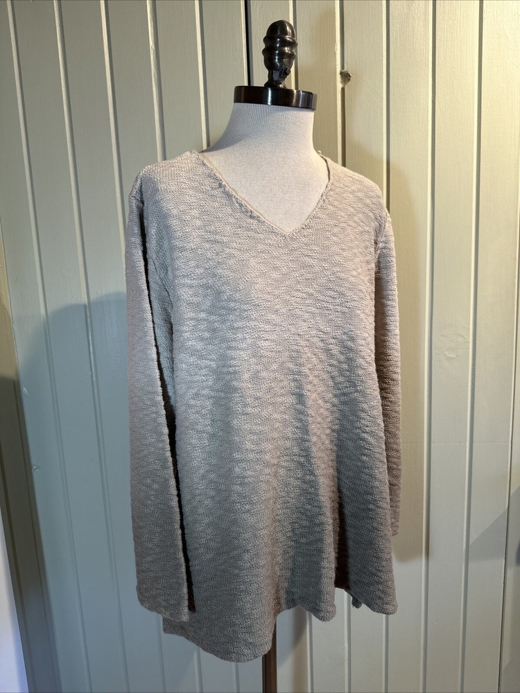Habitat Sweater Womens Large Beige Ombre Long Sleeve Dip Dye V Neck Top Casual...