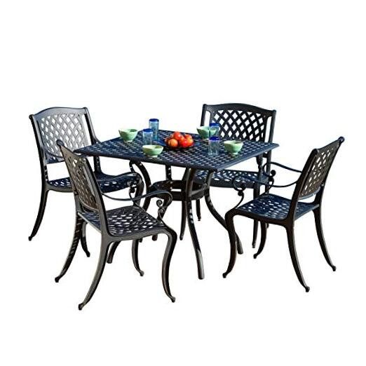 Return Policy Fast Delivery Trusted seller Hallandale Cast Aluminum Outdoor Dining Set, 5-Pcs Set, Black Sand Product Description 5-Piece set: our dining set will meet all of your outdoor furniture needs. This high-class set includes 4 chairs and a square table in a beautiful Black color, adding style to your space without sacrificing comfort. The chairs fit perfectly around the table for backyard family dining and picnics or lounging poolside with friends. Rust-resistant metal: at , we bring you the best outdoor furniture available. Our table and chairs are made of sturdy and durable cast aluminum that is rust-resistant for years of Outside Use. If you use this set by the pool, its all-weather quality helps prevent water damage caused by wet swimsuits and splashing. Intricate antique design: We created our Marietta furniture set in a gorgeous Lattice design. The black and sand finish is neutral and looks great with other yard and patio decor. Deck, balcony This Dining set is the perfect addition to any space outside, like a backyard patio, outdoor deck, sunroom or garden, or near a pool, outdoor Bar, grill, or BBQ pit. The expertly crafted interlace Table includes an opening for a patio umbrella. Dimensions: knowing the dimensions of New patio furniture is essential to ensure that you get a Table and Chair set that fits your needs. Our cast aluminum table is 39. 37" L x 39. 37" W x 29. 53" H, and each of our 4 chairs is 23. 43" L x 26. 18" W x 35. 43" H. You’ll love how this furniture set uniquely accents your space. Ships in several boxes, may ship separately Shipping Returns Payment Shipping Shipping is FREE to all addresses other than APO/PO boxes in the lower 48 states. All our stock ships from US-based warehouses. Shipped via USPS or UPS (depending on location and package weight) Unless stated otherwise, all orders will ship within 24-72 hours of your payment being processed. Check our feedback to see the great reviews of FAST shipping we offer. Returns Seller does not accept returns Payment We currently accept payment via eBay managed payments only. Once payment is cleared, we will dispatch your shipment within 1-3 business days. Please refer to the "Shipping" tab for more information regarding shipping speed to your destination.