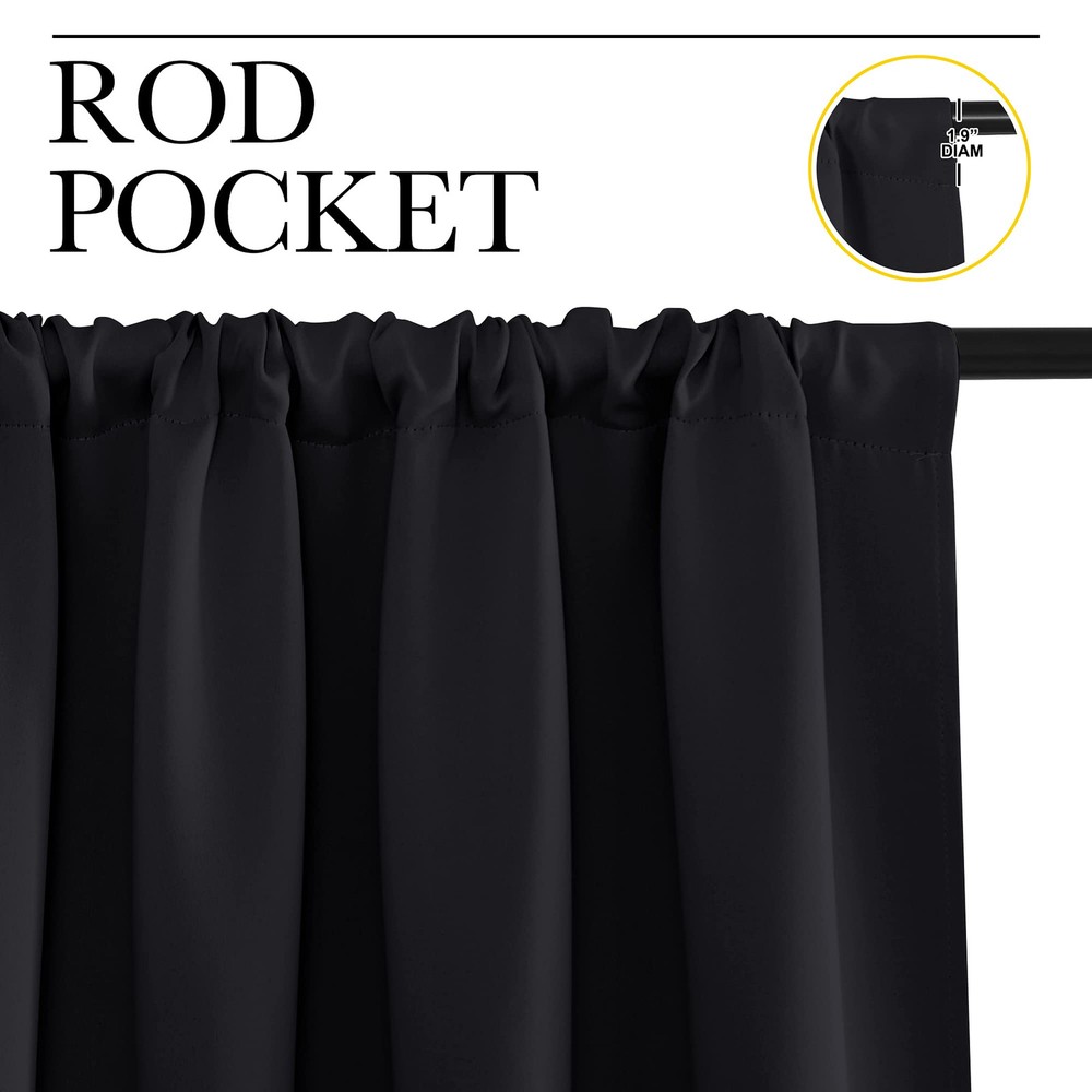 ELEGANT DESIGN: 2 panels per package. Each Blackout Curtain Panel measures 42 inches wide x 63 inches long. The drapery is constructed with rod pocket, fitting the curtain rod of your choice up to 2 i...