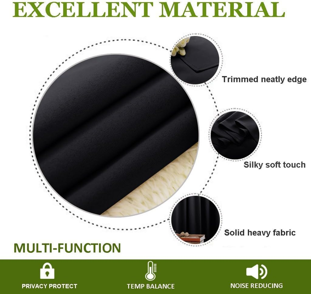 READY MADE: Package includes a panel Sliding Glass Door Curtains with 70" wide x 84" length. The same material back as of front makes Patio Door Curtains appear more elegant. As a general rule, for proper fullness panels should measure 1.5-2 times the width of your window/opening. NICE FABRIC: The blackout curtain's fabric is super soft and heavy innovative triple-weave polyester fabric. Suitable perfectly for sliding door, patio door, and any large window. These wide curtains can be hung separately, or combine with NICETOWN sheer curtains. MULTIPLE FUNCTIONAL: These blackout curtains are wide enough to cover the sliding door perfectly. Besides, the curtain panel helps your patio door to block out most of the light and UV rays, high performance on thermal insulated, noise reducing and privacy-protecting. WISE BUDGET: protects your furniture and floor exposed to the sun, while still helping you balance temperature on heating and cooling your home. Privacy protection. The greatest benefit is to bring you a good night's sleep, making you full of energy every day. EASY MAINTENANCE: Good quality finishing will withstand years of use. Machine washable and Wash the water temperature below 86F. Mild detergent no bleaching. Low-temperature ironing. Measure your pole and window size before you choosing curtains. Product Description HEAVY-DUTY SILVER RING Suitable for most curtain rods, and easily for hanging and sliding. HIGH DENSITY SUTURE The curtain fabric looks more exquisite and worthwhile. SAME FABRIC FRONT AND BACK The same fabric for both sides makes the curtain a simple style. TRIPLE WEAVE TECHNOLOGY Provide you with a perfect shading performance of about 50%-99% Blackout. DO WELL IN THERMAL INSULATED After insulating with the curtain, the temperature drops a lot. 1 SILVER GROMMET 2 HIGH DENSITY SUTURE 3 FRONT AND BACK 4 TRIPLE WEAVE FABRIC 5 THERMAL INSULATED COLOR SHADING DISPLAY THE COLOR OF THE ACTUAL ITEM MAY VARY SLIGHTLY IN DIFFERENT ENVIRONMENT The video showcases the product in use. The video guides you through product setup. The video compares multiple products. The video shows the product being unpacked. The video showcases the product in use. The video guides you through product setup. The video compares multiple products. The video shows the product being unpacked. CLASSIC AND POPULAR COLOR RECOMMENDATIONS TYPES OF CURTAIN TOP FOR NICETOWN BLACKOUT CURTAIN GROMMET TOP Make curtain orderly, easy to install and slide, so that let the room elegant. Recommended with no greater than a 1.6-inch rod for maximum movement. ROD POCKET Make some small pleats that give a feeling of cozy and classic. Recommended with no greater than a 1.7-inch rod for maximum movement. BACK TAB Give 3 options to hang curtains which is a perfect choice for window decoration. Recommended with no greater than a 1.7-inch rod for maximum movement. TOP TAB Creates casual elegance for your house, which makes the curtains easy to install and slide. Recommended with no greater than a 1.9-inch rod for maximum movement. TWIST TAB Not only creates rich, deep folds for a professional look, but also makes this panel easy to hang, open and close. Recommended with no greater than a 1.9-inch rod for maximum movement. PINCH PLEATED More gathered than other headings and have permanent sewn-in pleats for a more luxurious. Recommended with no greater than a 1.9-inch rod for maximum movement.