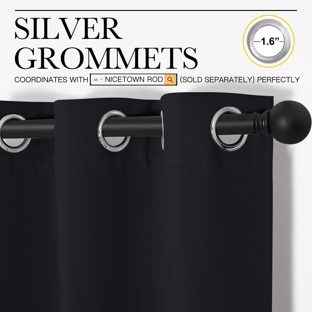 READY MADE: Set includes 2 BLACKOUT PANELS of 42" wide x 84" length with 6 grommets top each. Quality fabric without liner feels soft and heavy. SERVE WELL: Curtains impede 85%-99% light and UV rays(D...