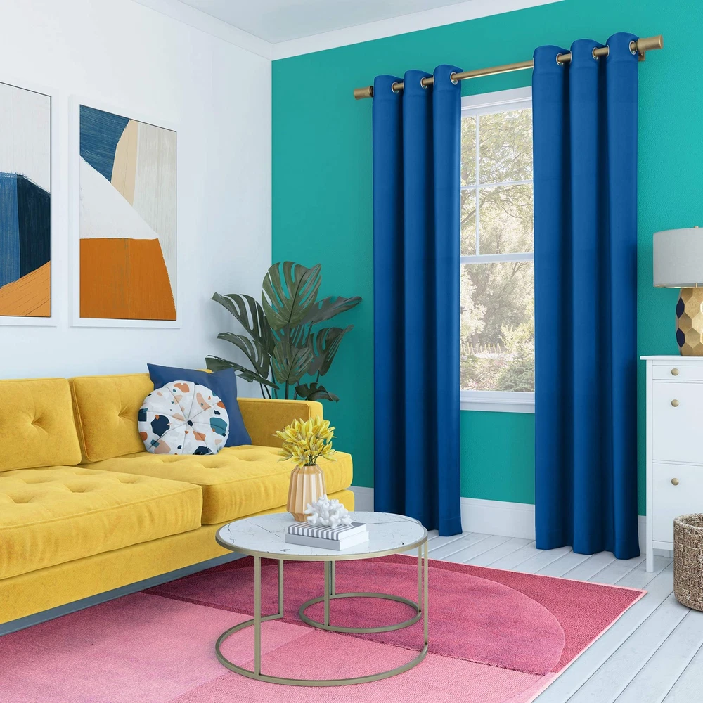 Block out 100% of outside light with a bright, fun pop of color in a bedroom, playroom, or any room of your home Thermal insulation helps keep summer heat and winter chill out of your home Energy efficient design reduces energy lost through your windows by up to 35% Noise reduction up to 35% helps you get a sounder, more uninterrupted sleep Built-in metal grommets fit curtain rods up to 1.5" in diameter Each panel sold separately. (Image features 2 panels)