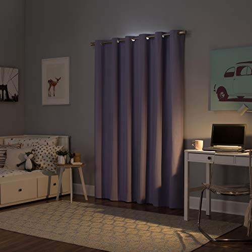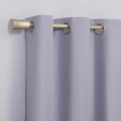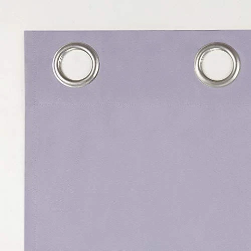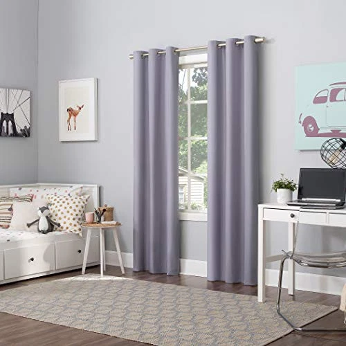 Keep your 's bedroom or playroom dark enough for naps and sleep while still letting in a hint of light with this set of 2 lavender-colored Halton Bright Vibes blackout curtains. The polyester fabric blocks out 100% of outside light, reducing noise and energy loss. Each panel measures 40 inches wide x 84 inches long and fits curtain rods up to 1.5 inches in diameter. The set includes 2 panels and metal grommets for easy hanging. Just machine wash these energy-efficient curtains as needed. Block out 100% of outside light with a bright, fun pop of color in a bedroom, playroom, or any room of your home Thermal insulation helps keep summer heat and winter chill out of your home Energy efficient design reduces energy lost through your windows by up to 35% Noise reduction up to 35% helps you get a sounder, more uninterrupted sleep Built-in metal grommets fit curtain rods up to 1.5" in diameter Each panel sold separately. (Image features 2 panels)