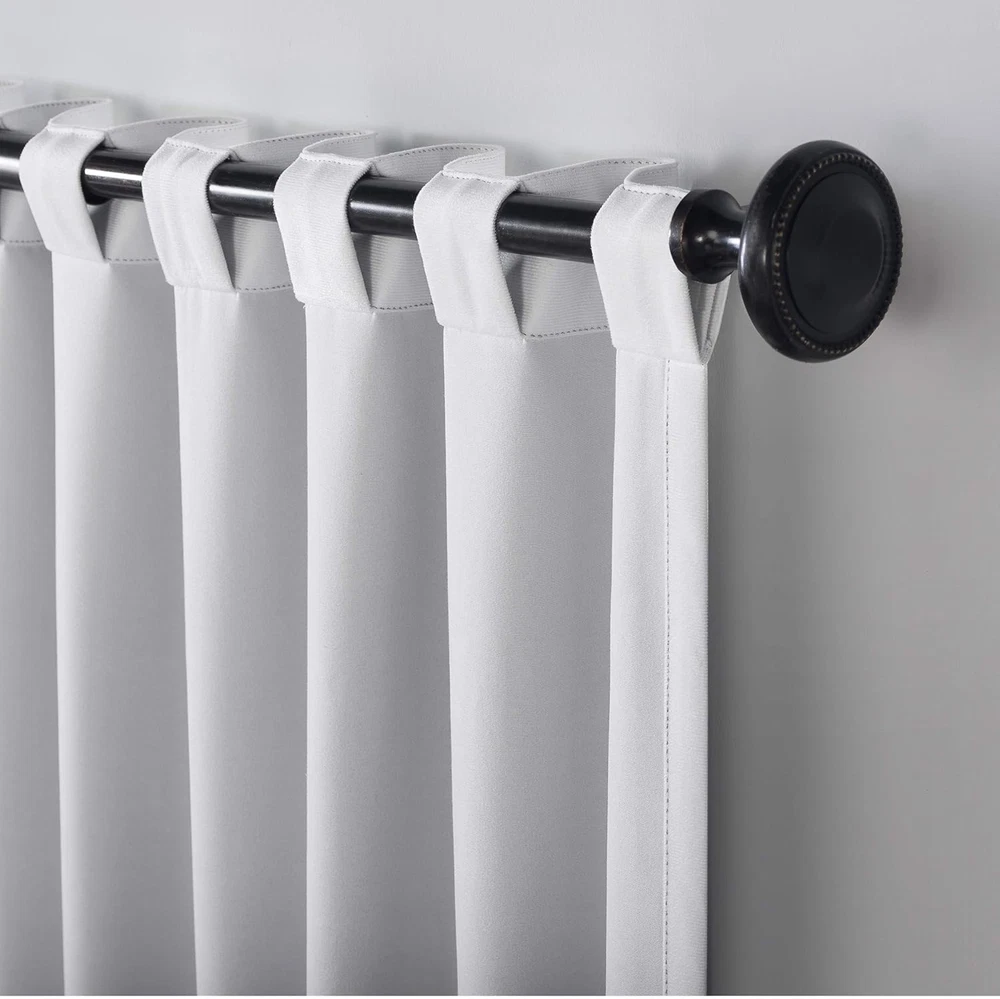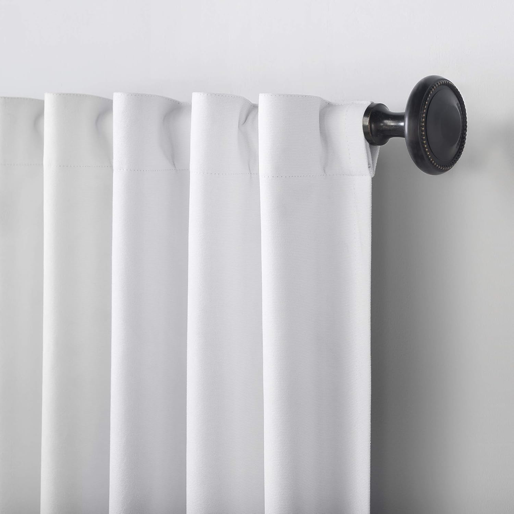 Velvet Decadent velvet fabric adds luxe appeal to any room Extreme Thermal Blackout technology blocks out 100% of outside light Thermal properties help keep summer heat and winter chill out of your home Noise reduction by up to 40% helps you get a sounder, more uninterrupted sleep Hidden back tabs fit curtain rods up to 1.5" in diameter Panels sold individually. Measure carefully prior to purchase. (Image features 2 panels) Featuring a decadent velvet fabric, Sun Zero Hampshire Velvet Noise Reducing Thermal Extreme 100% Blackout Back Tab Curtain Panels add luxe appeal to any room of your home. Equipped with hidden back tabs for easy hanging on standard curtain rods up to 1.5" in diameter. Sun Zero Extreme Blackout™ Thermal Lining is laboratory tested to block out 100% of light, reduce outside noise by up to 40%, and decrease energy lost through your windows by up to 40%. Comfort is optimized with thermal properties that help keep summer heat and winter chill out of your home. Built-in hidden back tabs on reverse side allow for easy slide-through installation on curtain rods up to 1.5" in diameter. Hang in your entertainment room to eliminate screen glare and reduce distracting outside noise, or in your bedroom for enhanced privacy and a sounder, more uninterrupted sleep. Sold as individual panels measuring 50" width by 96" length in color pearl. Measure carefully before selecting your desired size and quantity. Rod not included. Machine wash cold on gentle cycle. Use non-chlorine bleach when needed. Tumble dry on low heat, using a cool iron as needed.