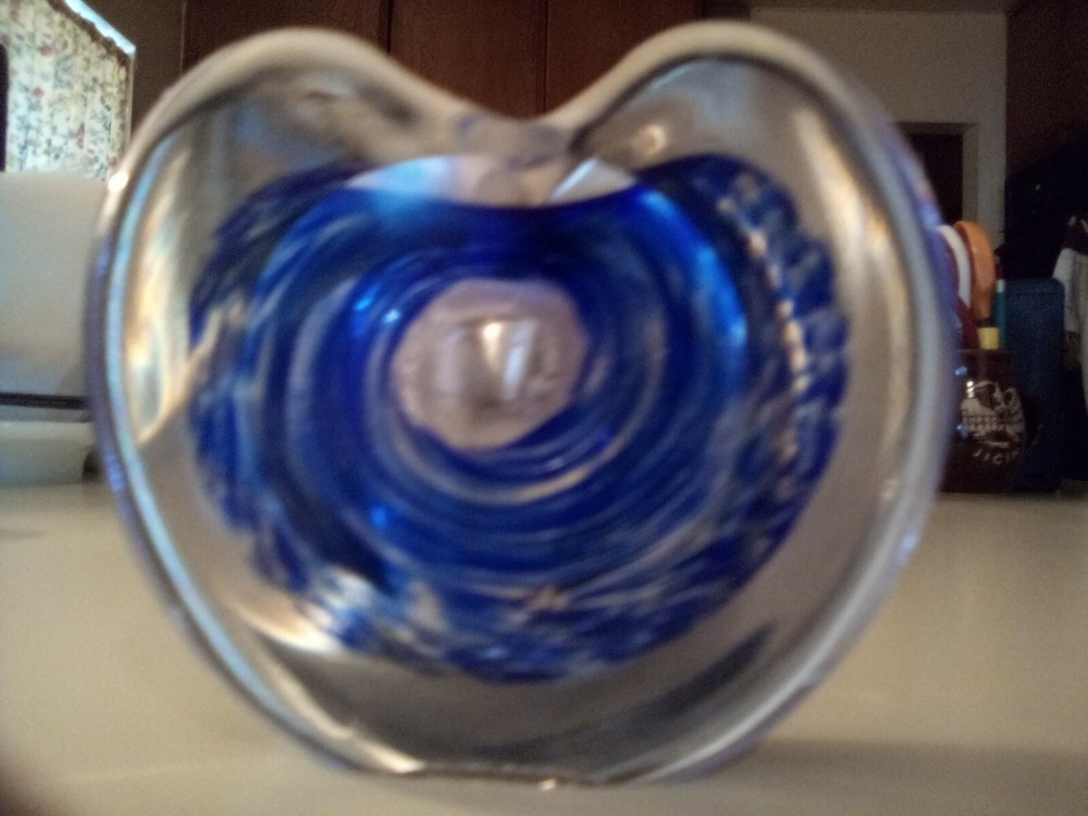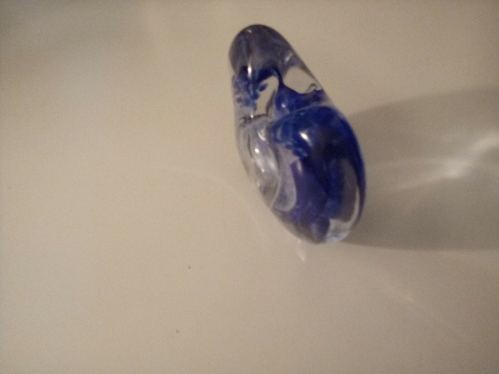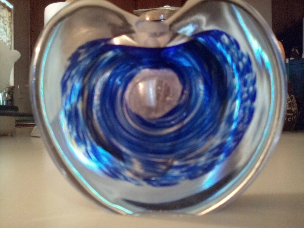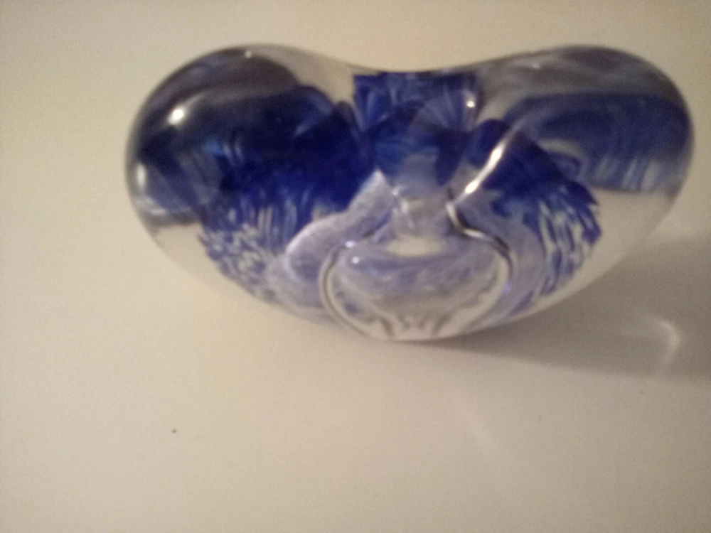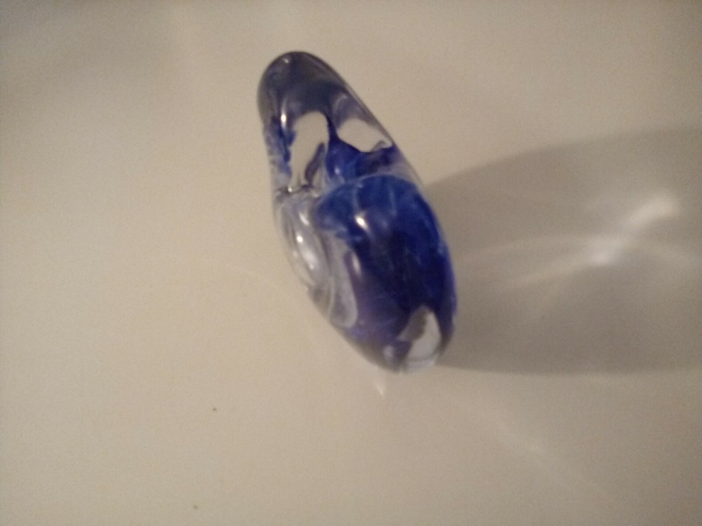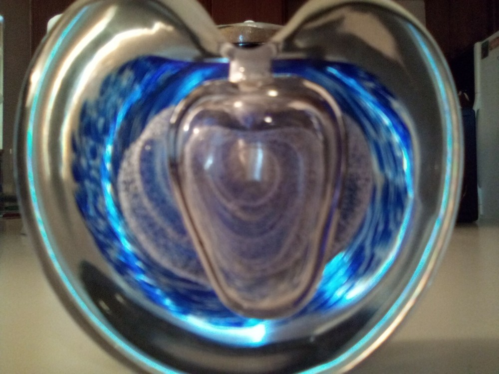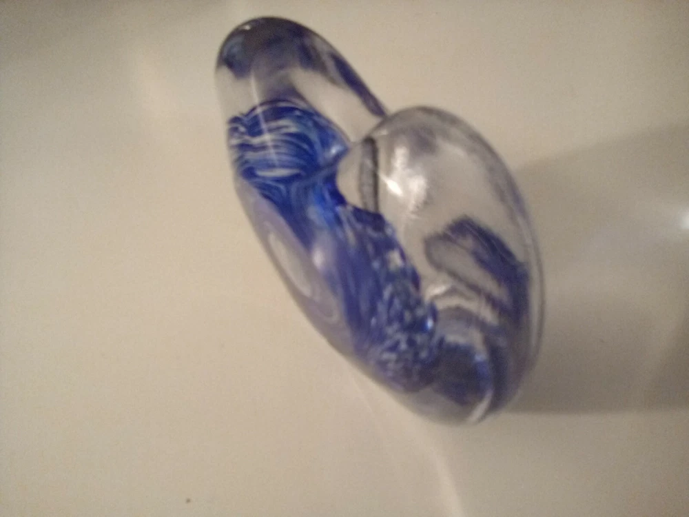 Hand Blown Studio Art Glass Blue Heart Shaped Perfume Holder Bottle...
