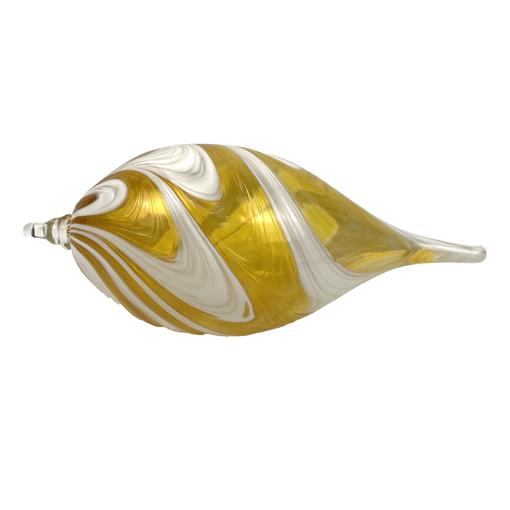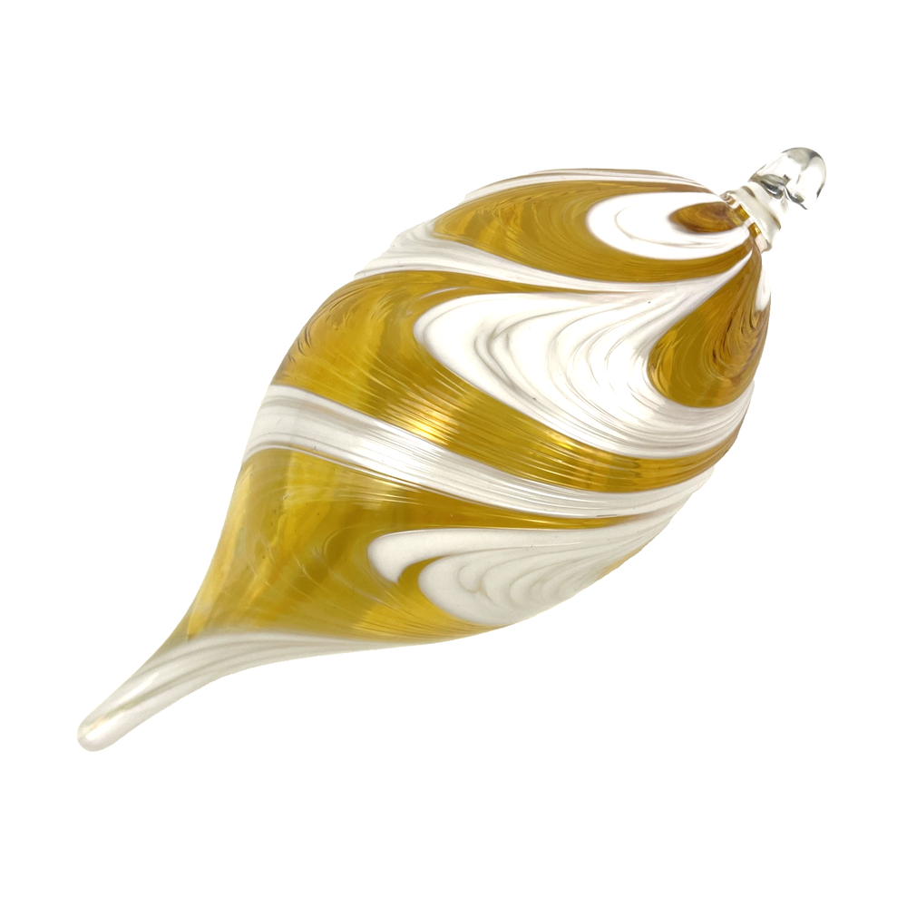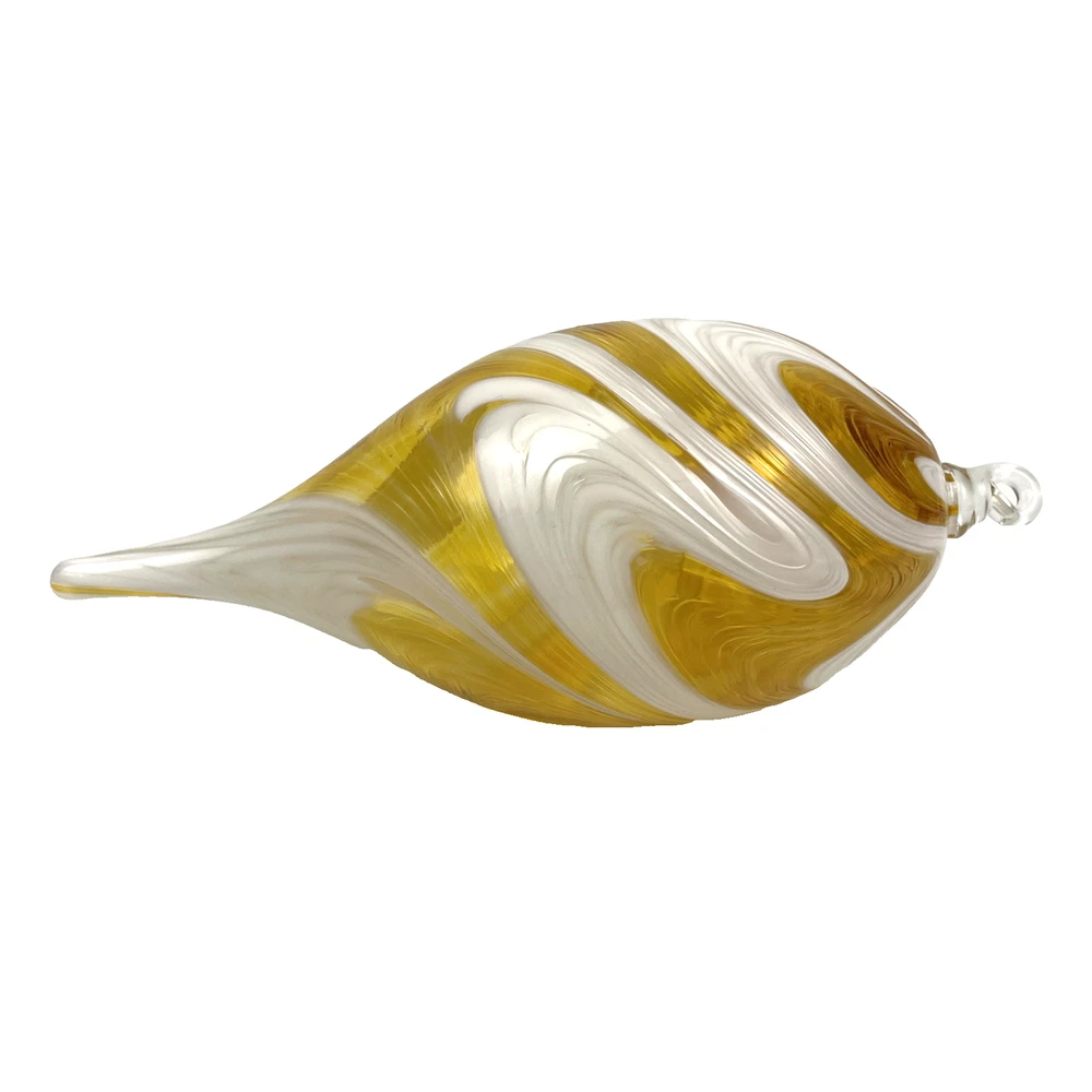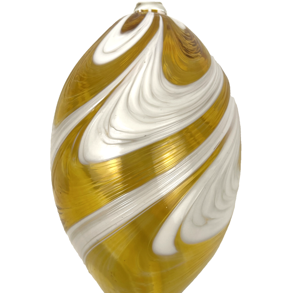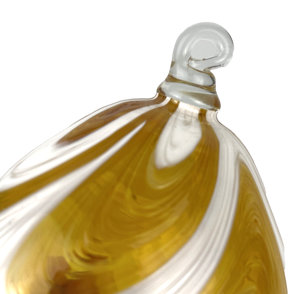 Hand Blown Studio Art Glass Ornament 7" Yellow Swirl Teardrop Sun Catcher 7 inches long including hanger x 3 inch diameter Excellent used condition. 7-inch hand blown yellow swirl teardrop art glass ornament or sun catcher. 4.9 oz before shipping materials.