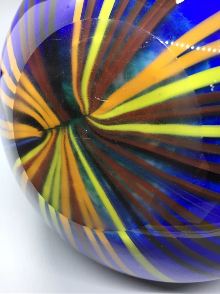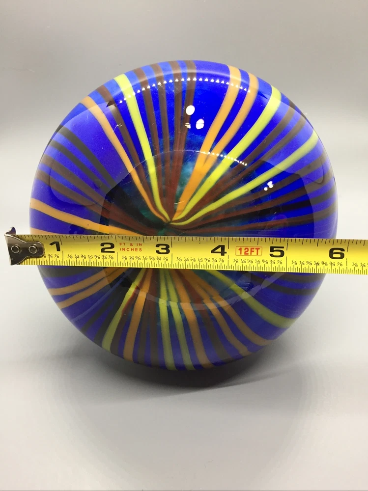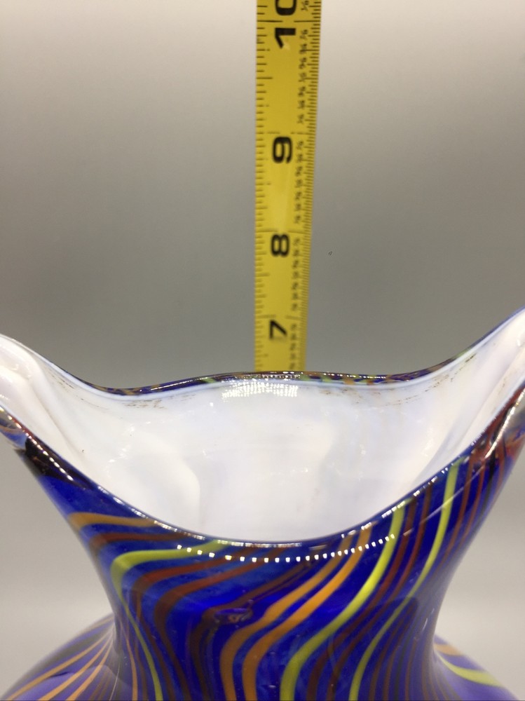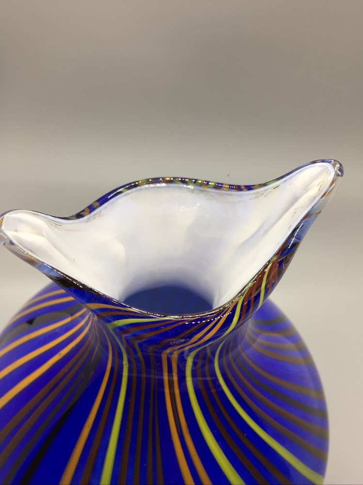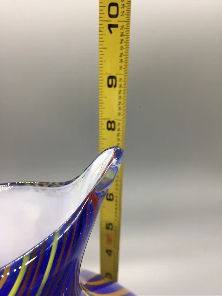 This stunning hand-blown glass owl vase is a true work of art! The deep blue and white swirl pattern with vertical lines gives it a mesmerizing, one-of-a-kind look. Despite its delicate appearance, it’s surprisingly sturdy and heavy, standing 8 inches tall with a lovely presence. The condition is excellent—barely any signs of wear. It’s perfect as a decor piece or a vase, adding elegance to any room. The craftsmanship is incredible—definitely a standout piece for collectors or anyone who appreciates unique glass art. Absolutely in love with it!