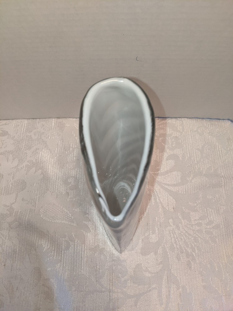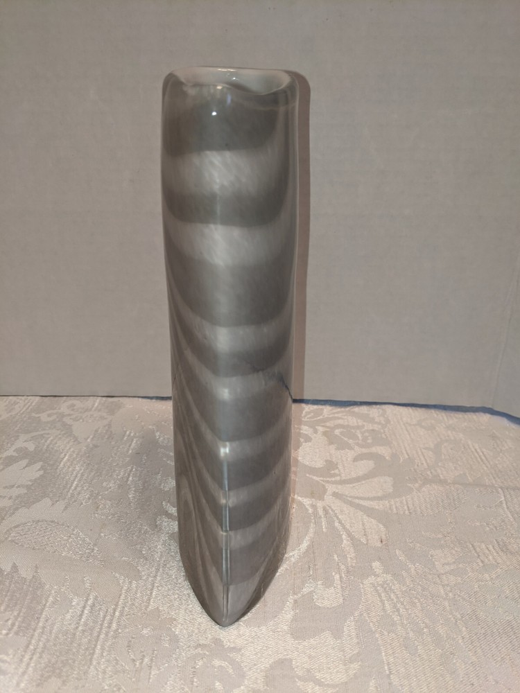 Hand Blown Studio Art Glass Vase Cased White and Gray Swirl 8.5". There are no chips or cracks. 8.5" x 4" x 2". Please see all photos and don't hesitate to get in touch if you have any questions.