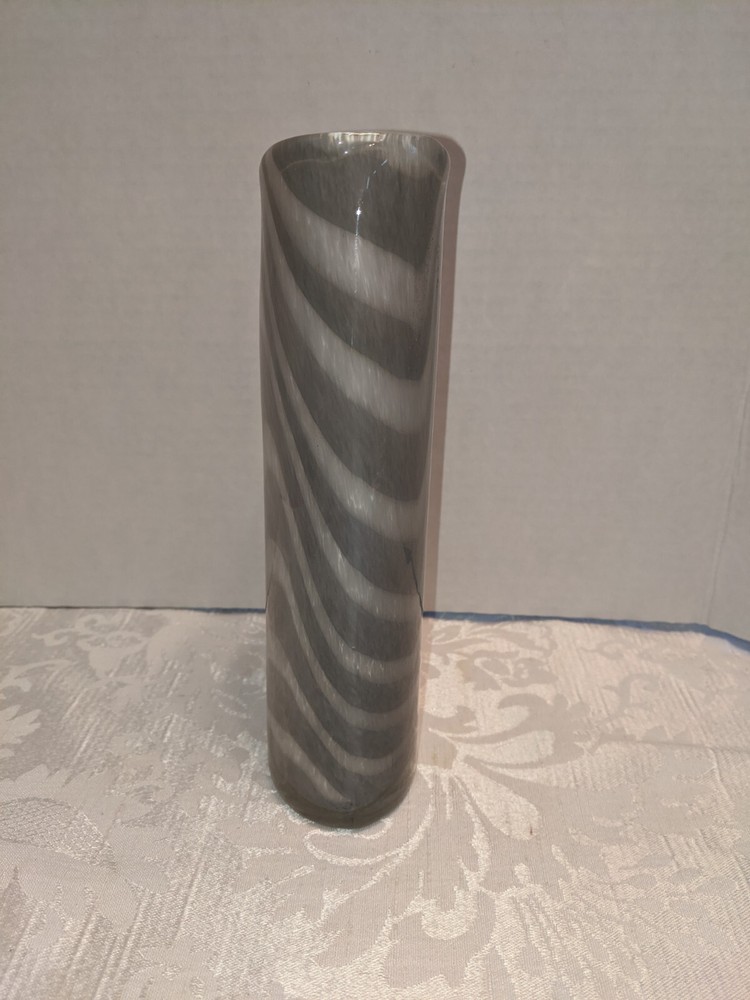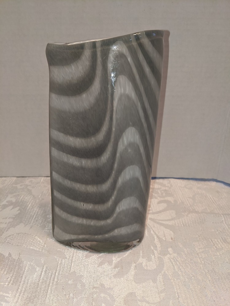 Hand Blown Studio Art Glass Vase Cased White and Gray Swirl 8.5". There are no chips or cracks. 8.5" x 4" x 2". Please see all photos and don't hesitate to get in touch if you have any questions....