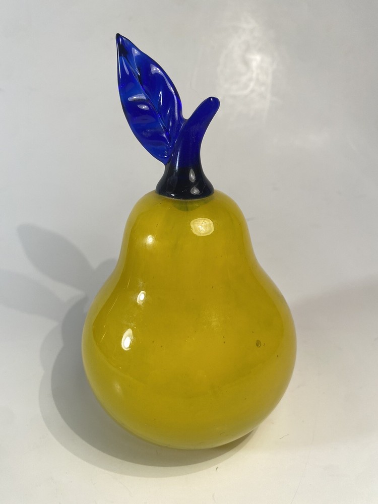 Hand Blown Yellow Pear Studio Art Glass Paperweight Artisan Fruit Unmarked....