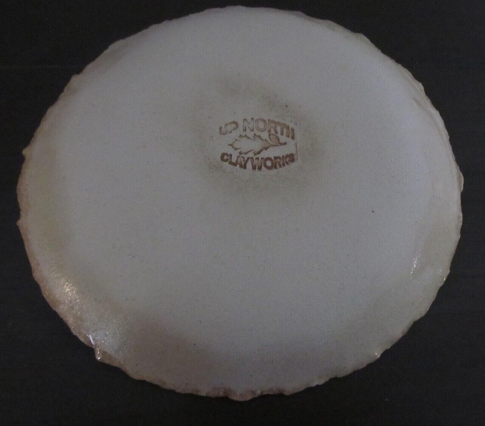 This is some Studio Art Pottery marked Up North Clay Works. It is a shallow Plate/Bowl that stands almost 1 inch tall and the diameter across is 7 1/2 inches. Check out the pictures provided. I will be listing a couple others from this studio, if interested take a look at my other auctions. Good Luck.
