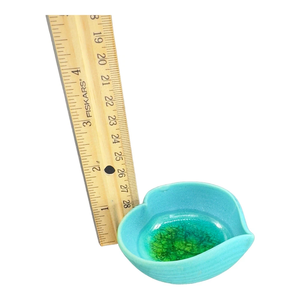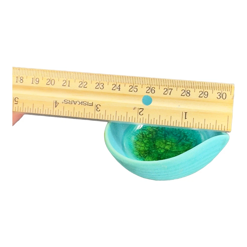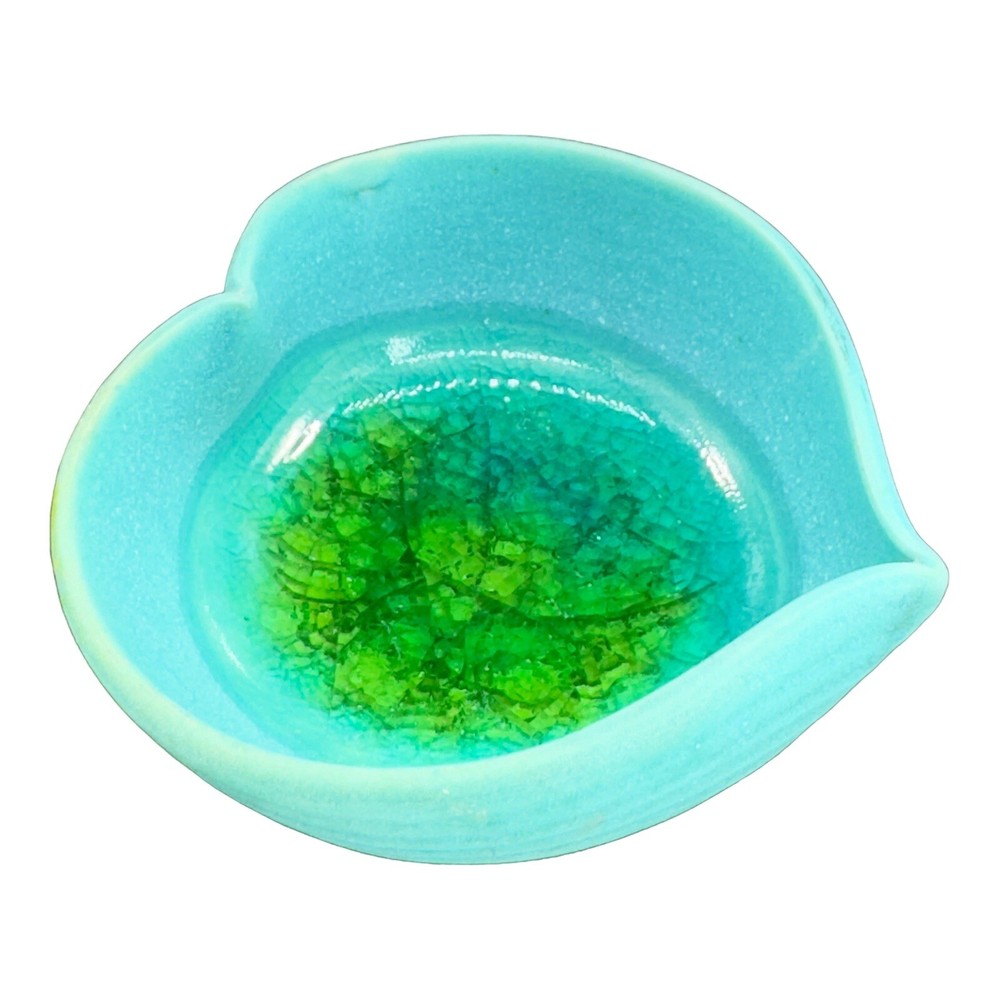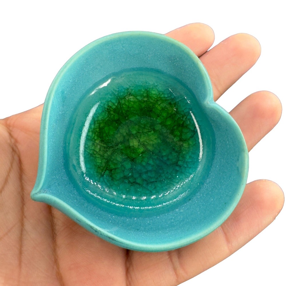 Hand Crafted Studio Pottery Crystalline Blue Heart Shaped Small Dish Bowl Green Measurements 2.75”Wide 1”Tall