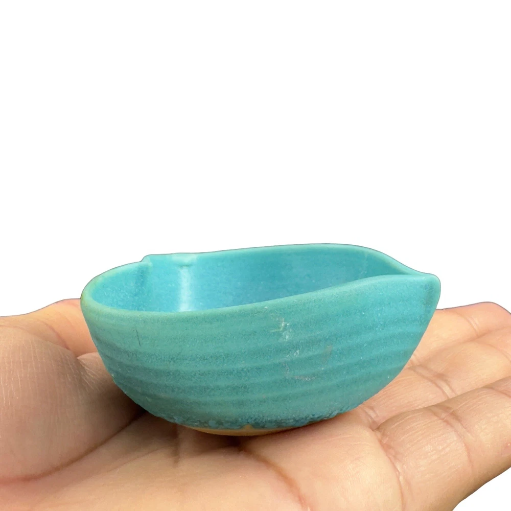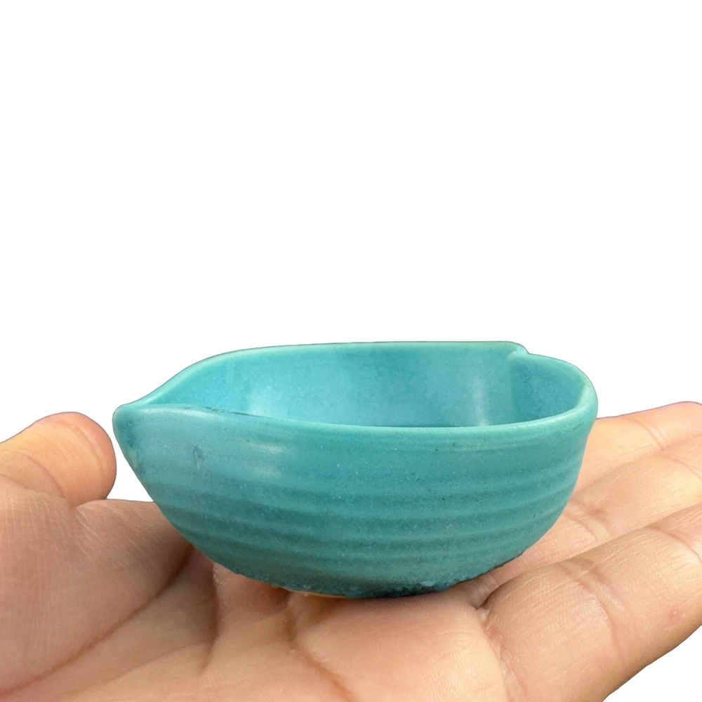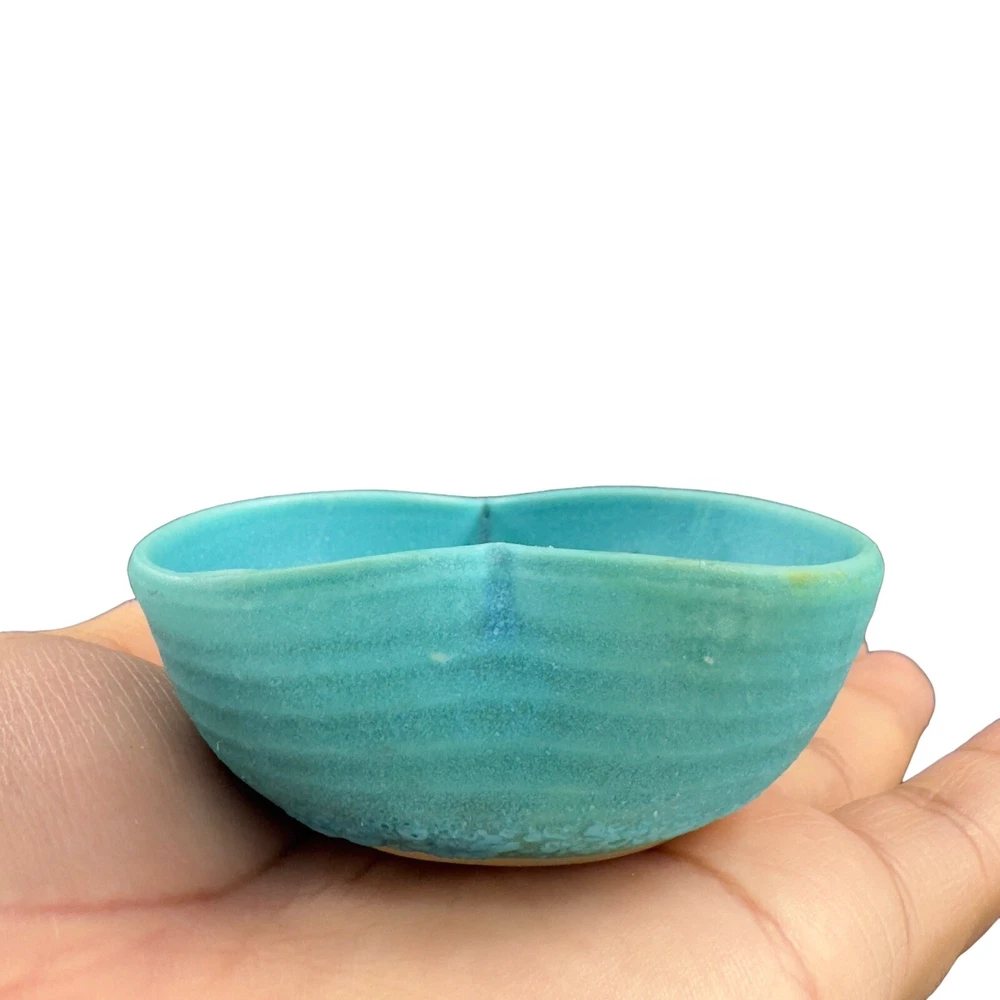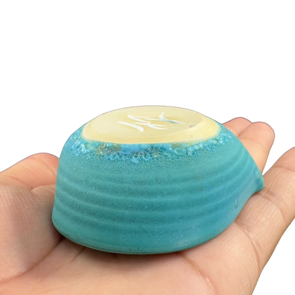 Hand Crafted Studio Pottery Crystalline Blue Heart Shaped Small Dish Bowl Green Measurements 2.75”Wide 1”Tall