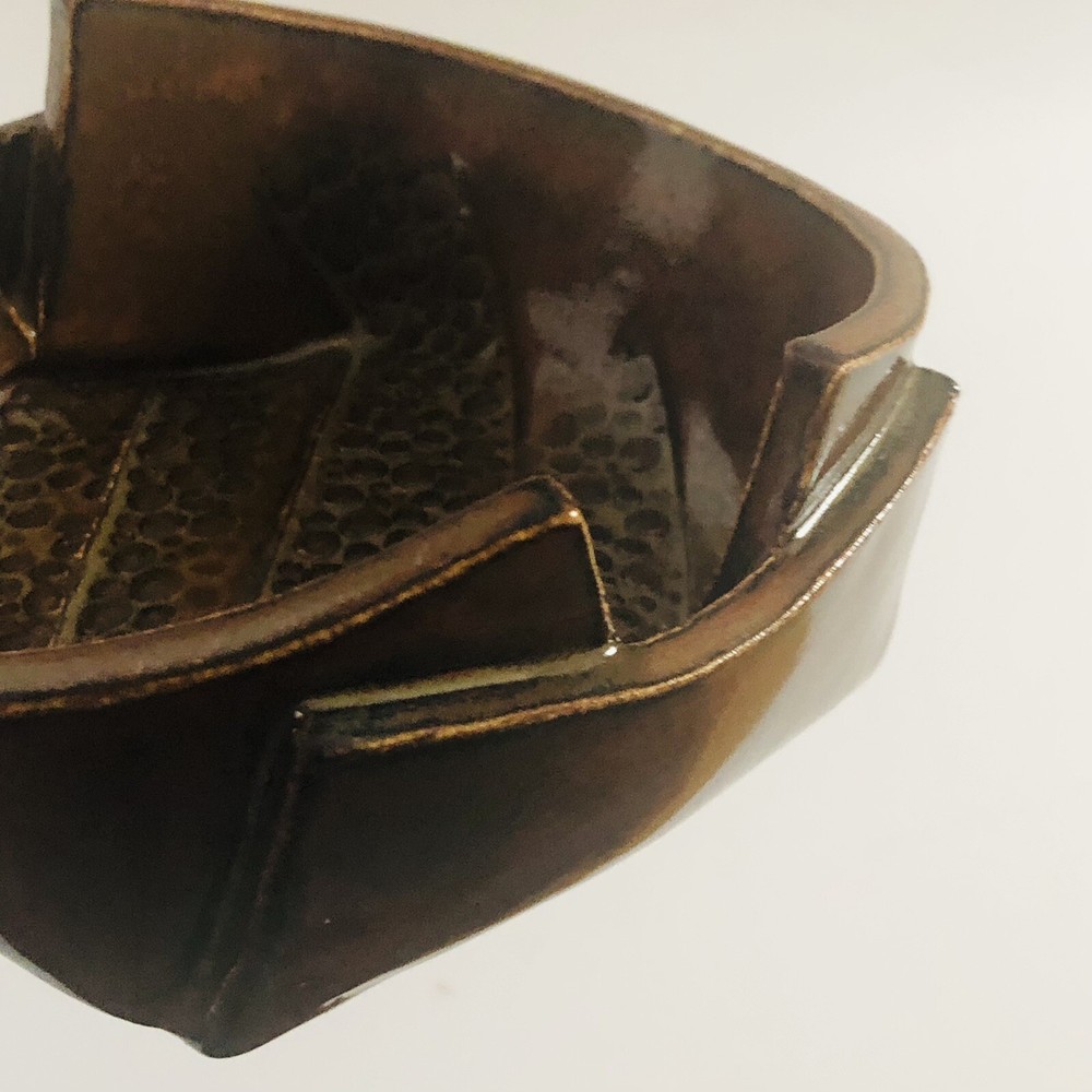 Hand Made Glazed Studio Art Pottery Candy Trinket Dish Textured Square Shaped. Hand built into a square shaped dish. Love the textured design and the glaze. Ships USPS Priority Mail....