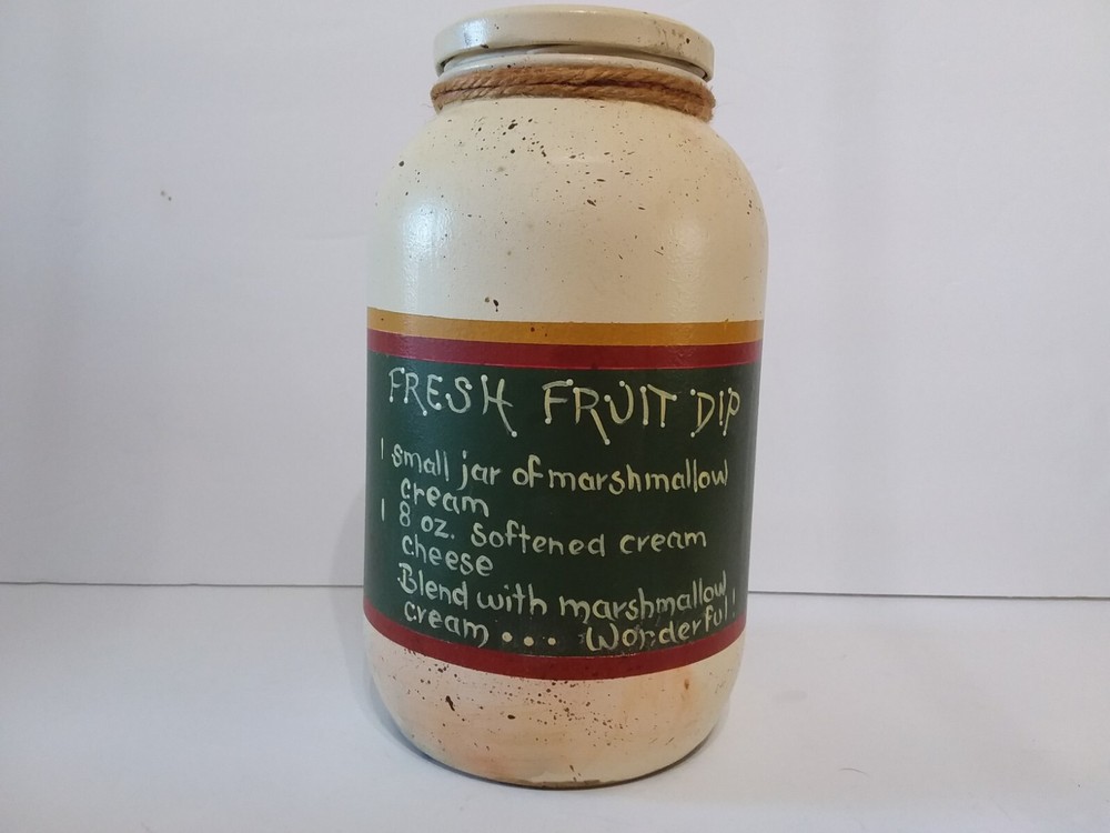 This adorable hand-painted glass jar is a charming addition to any kitchen! The vibrant watermelon, grapes, and apple design gives it a cheerful, country feel—perfect for gifting or home decor. The bonus fresh fruit dip recipe on the back adds a thoughtful touch. High-quality and lovingly crafted, it’s sure to brighten up your space or make someone's day. A must-have for anyone who loves nostalgic, handcrafted decor!
