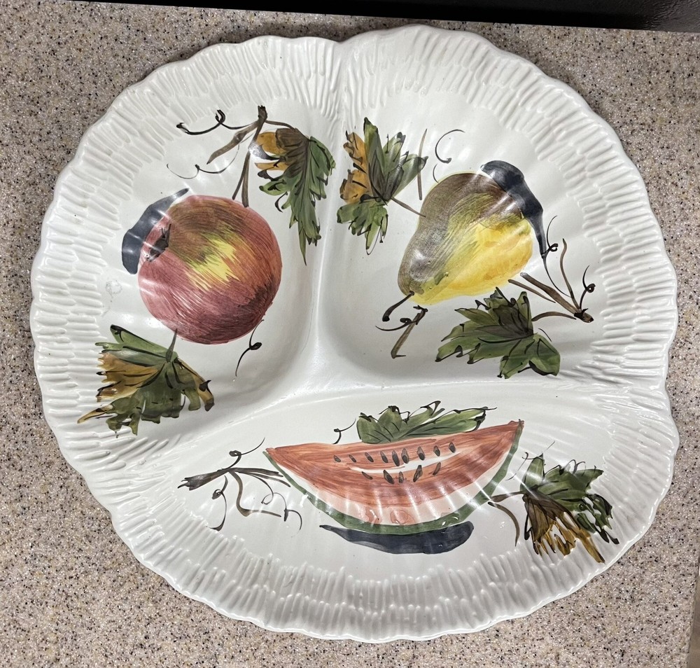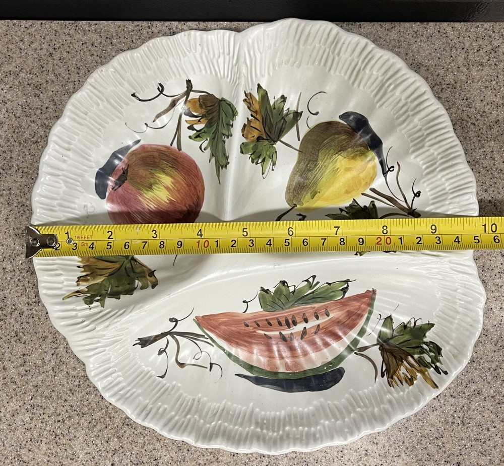 Hand Painted Organic Shaped Divided Serving Dish Fruit Made in Italy in excellent preowned condition