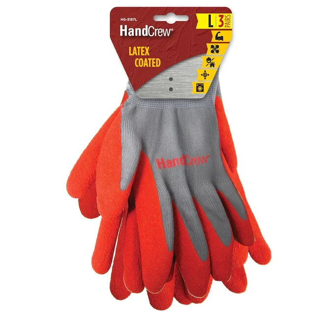 HandCrew Unisex Latex Dipped Multipurpose Gloves, One Size Fits All Marked as Large One size fits all. Best for Medium and Large Because of the excellent stretch, fit comfortable fit for all. Latex coating provides excellent grip Polyester stretch back for a comfortable fit
