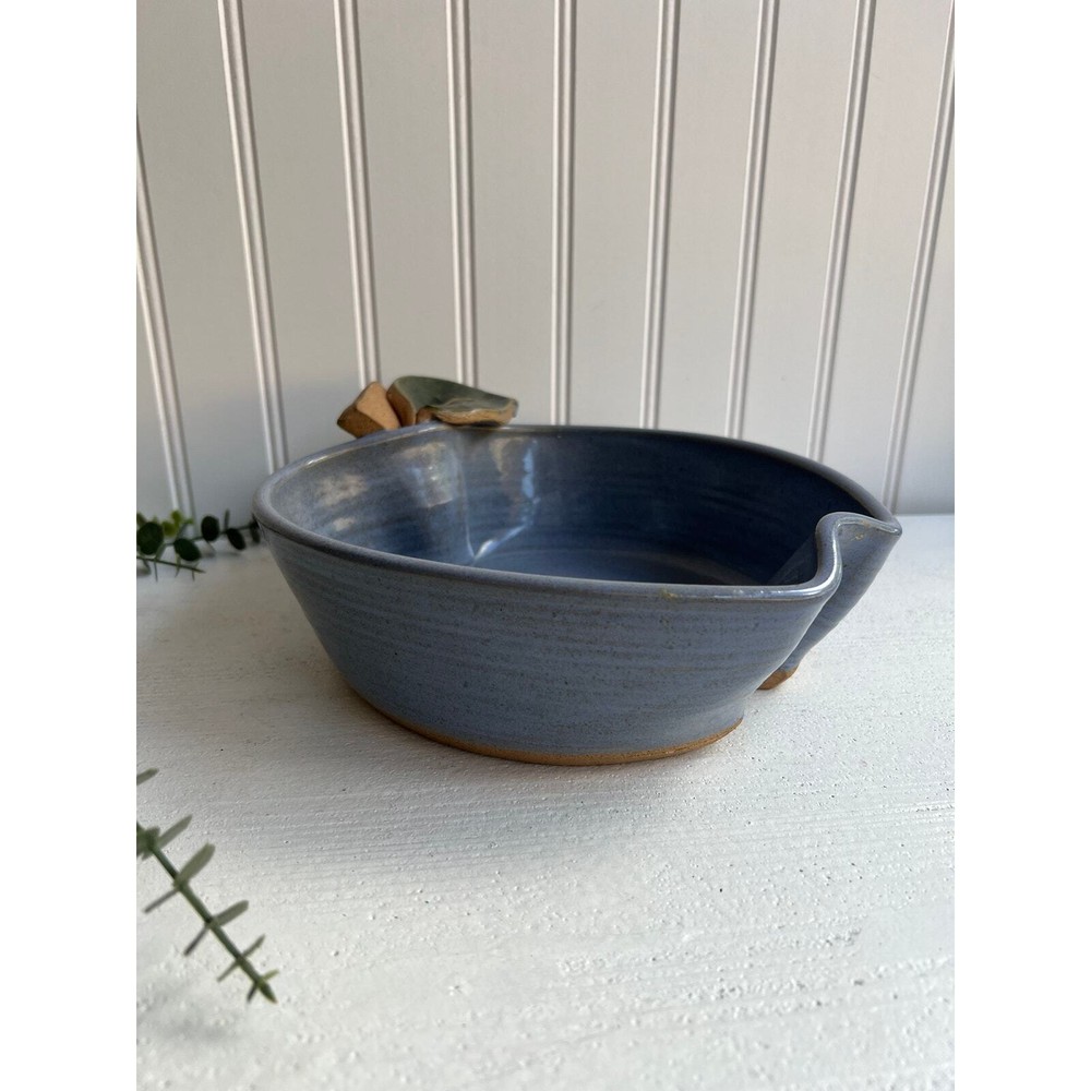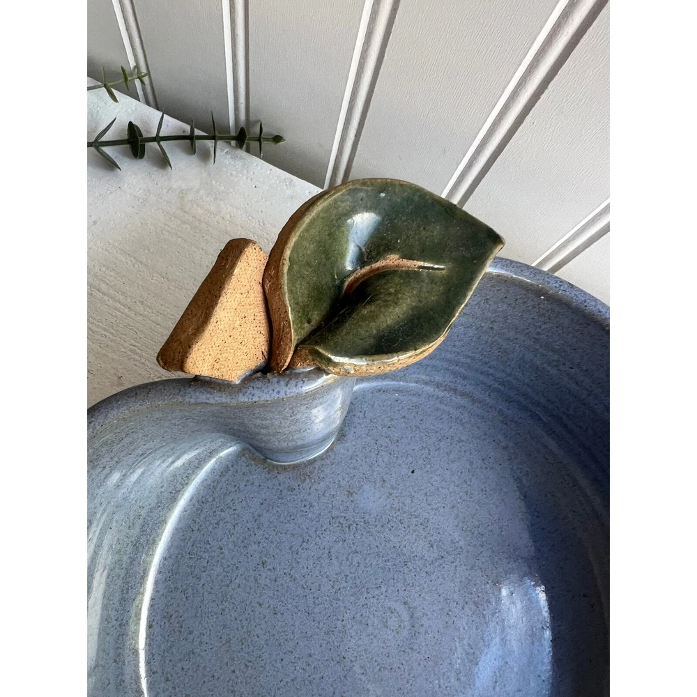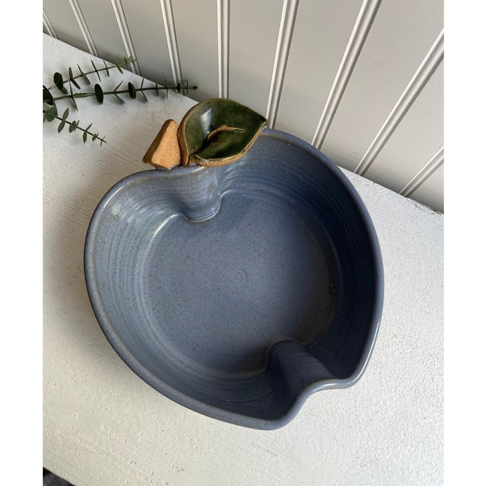 <![CDATA[<div>-Unique handmade pottery bowl in an apple-shaped design with a soft blue glaze Features a detailed stem and leaf accent for a natural, artistic touch Artist-signed, looks like "Gol" Condition: In great condition, no chips. Please refer to photos for all details. No major flaws unless disclosed. Shipping: I carefully package all items! Your package may include some recycled materials. Questions? Please feel free to reach out, always happy to help! Thanks for visiting my shop!