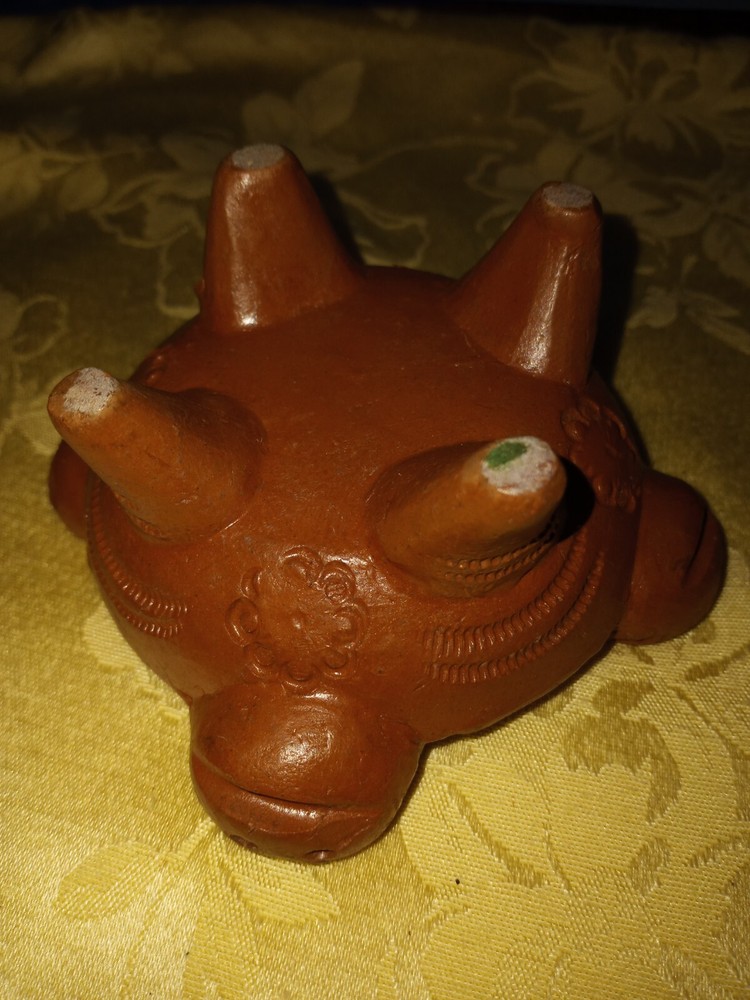 Add a touch of southwestern style to your home decor with this handmade studio art pottery footed ashtray. Crafted from clay, this 5" square ashtray features a unique art pottery production style. The cigarette holders resemble a turtle head and the sides resemble his body and feet. Perfect for smoking enthusiasts, this ashtray is not only functional but also a great decorative piece. It is handmade, making it one of a kind. This ashtray is sure to impress your guests and add a touch of personality to your space. Thank you for your interest.