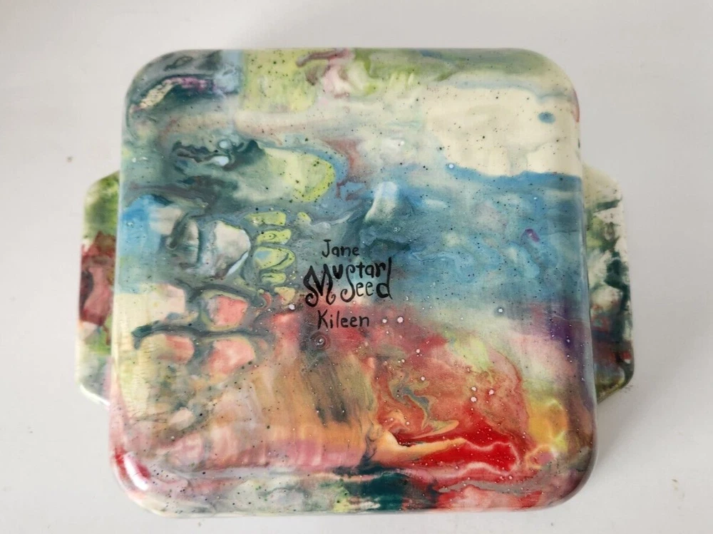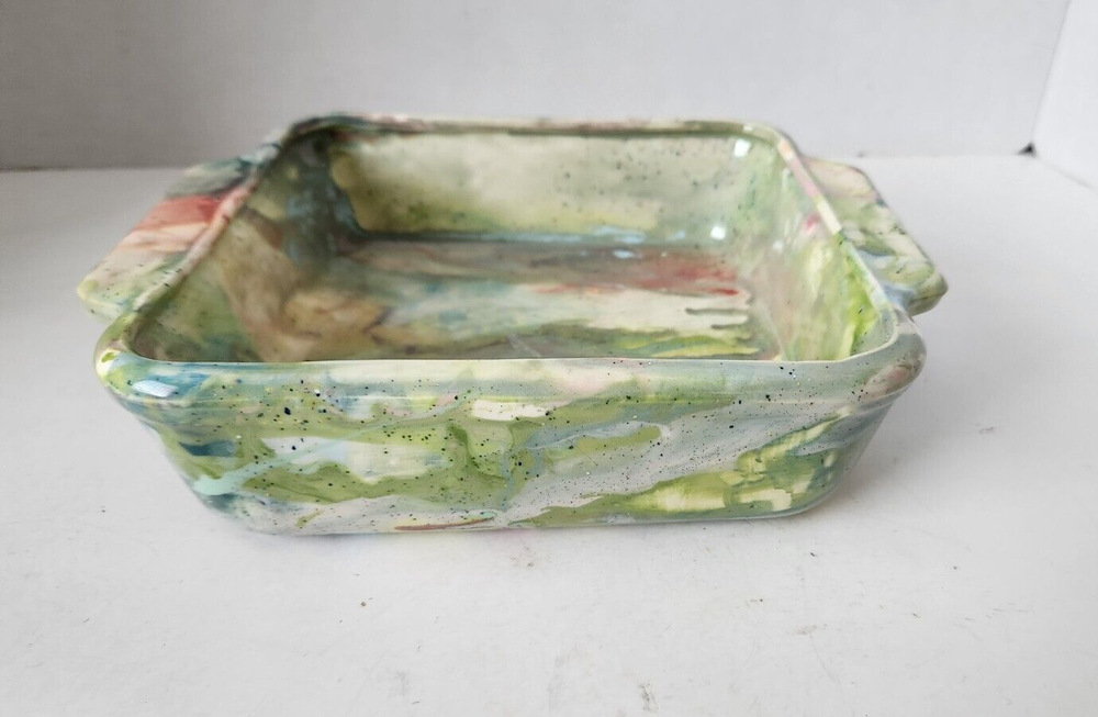 Colorful Handpainted Art Studio BAKING DISH Jane Kileen~ Mustard Seed 8 x 8...