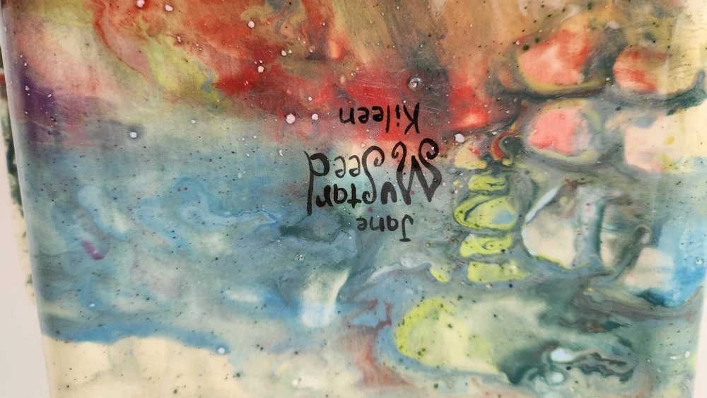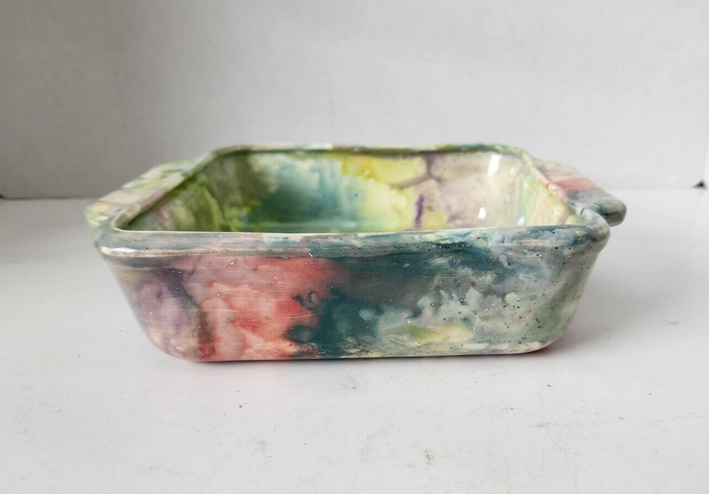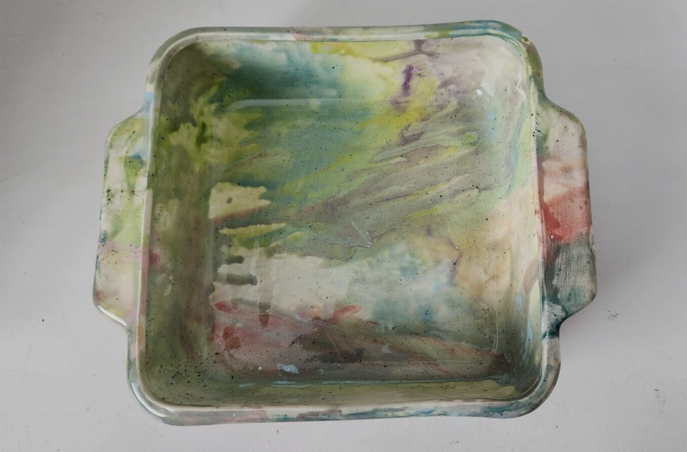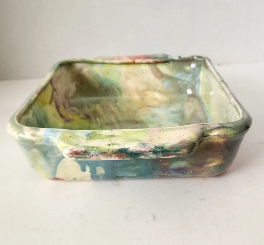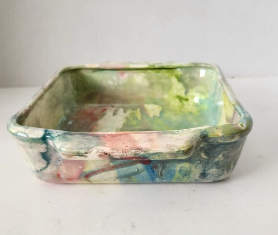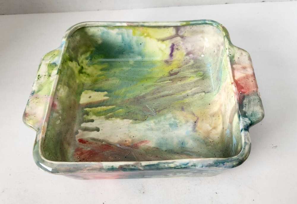 Colorful Handpainted Art Studio BAKING DISH Jane Kileen~ Mustard Seed 8 x 8