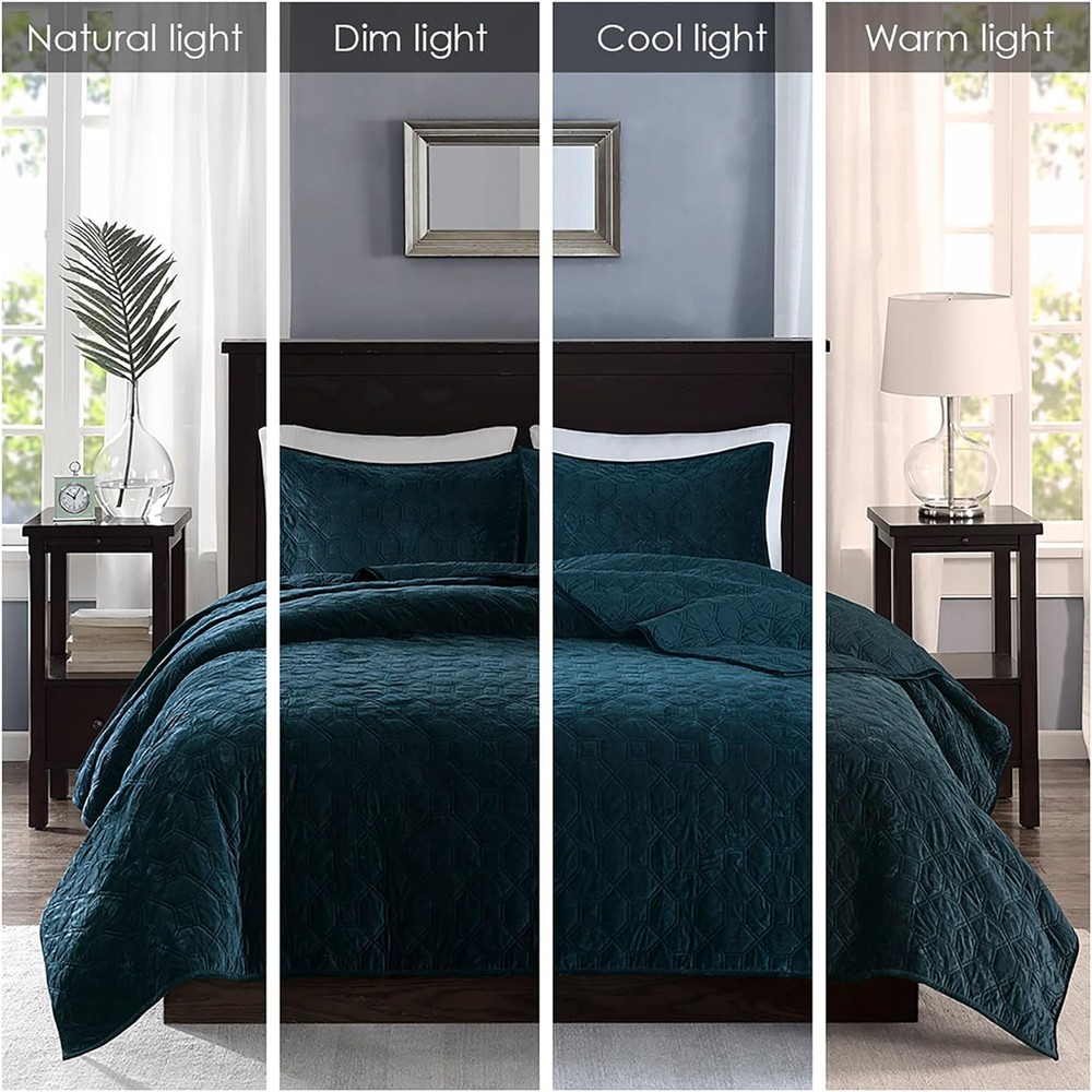 Menu Other Items Feedbacks About Us Contact Us Add To Favorites Harper Quilt Set Velvet Casual Geometric Stitching Design All Season, Lightweight Coverlet, Cozy Bedding, Matching Shams, King/Cal King(104"X94"), Teal 3 Piece Cotton Imported Elegant and soft velvet coverlet set in geometric quilting technique Great for added layer for extra warmth in cold season Set includes coverlet and 2 matching shams Cotton filling for comfort and durability polyester velvet, quilted, 7oz filling/sq yard 90% cotton, 10% other fiber filling, prewash finish ; 1 Coverlet:104"W x 94"L 2 King Shams:20"W x 36"L + 0.5"D (2) machine washable tumble dry low The Madison Park Harper Velvet 3 Piece Coverlet Set offers a casual and comfortable update to your bedroom. The polyester velvet coverlet features a soft texture with a geometric quilted design, for a rich look and feel. Matching shams pair beautifully with the coverlet to complete the quilt set. Providing a charming layering piece to your bed. Item Specification Item model number MP13-4612 Style Transitional Assembly required No Pattern Geometric Country of Origin China Theme Geometric Department unisex-adult Import Imported Number of Pieces 3 Batteries required No Product Dimensions 104 x 94 x 0.25 inches Material Polyester Seasons All Is Discontinued By Manufacturer No Included Components 1 Coverlet, 2 King Shams Item dimensions L x W x H 104 x 94 x 0.25 inches Item Weight 7 ounces Color Teal Global Trade Identification Number 00675716969585 Refill synthetic, fiber, polyester, cotton, cotton polyester synthetic fiber Fabric Type Cotton Product Care Instructions Machine Wash Size King/Cal King(104"x94") Dimensions Shipping Returns Additional Info Product Dimensions: 94.0 inches x 104.0 inches x 0.25 inches. Weight: 7.0 oz Fast shipping is very important for us. Our standard shipping service is FREE. Your order will be shipped within 1-3 business days upon full payment received. Most items are delivered within 3-5 business days, however, please allow 3-10 business days. We are shipping only to USA. We only ship to the confirmed Paypal address. We reserve the right to cancel any order for any reason at any time. We are not responsible for undeliverable addresses. We offer a 30 day return policy from checkout winning date. Your satisfaction is guaranteed! If for any reason you are unhappy with your item, just return it within 30 days for a full refund, minus shipping cost. Please contact us prior to initiating a return so that we can issue you a refund authorization. Items defective upon receipt must be packaged in their retail packaging as if new and returned with a detailed description of the problem. Return shipping fees are not refundable. We reserve the right to decline any returns if the above guidelines are not followed. All of our items, unless otherwise stated, will only run on 120 volts. Please check to make sure your country complies with these specifications. If you have a problem or question regarding your transaction please contact us before leaving any type of feedback. We will work with you to resolve any problem you may have.