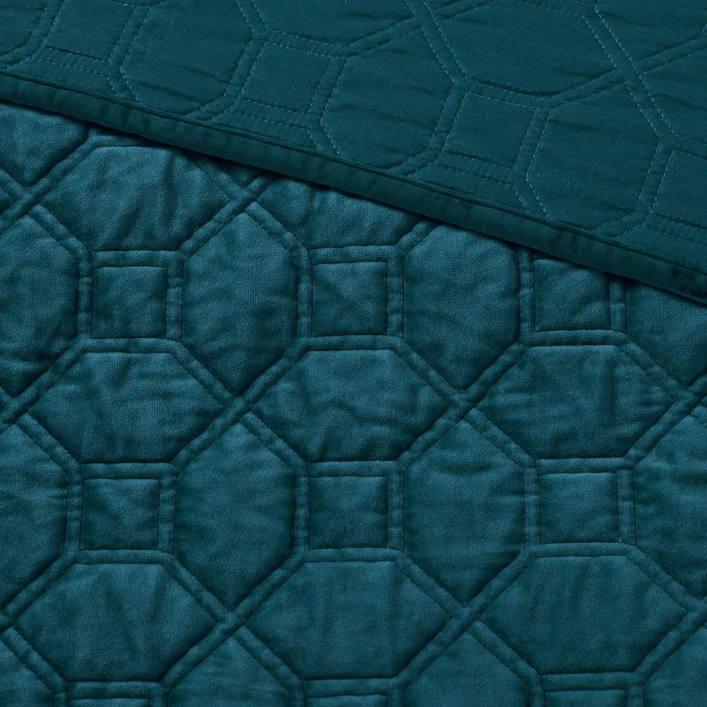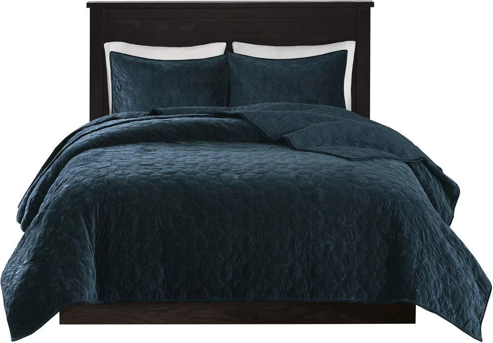 Menu Other Items Feedbacks About Us Contact Us Add To Favorites Harper Quilt Set Velvet Casual Geometric Stitching Design All Season, Lightweight Coverlet, Cozy Bedding, Matching Shams, King/Cal King(104"X94"), Teal 3 Piece Cotton Imported Elegant and soft velvet coverlet set in geometric quilting technique Great for added layer for extra warmth in cold season Set includes coverlet and 2 matching shams Cotton filling for comfort and durability polyester velvet, quilted, 7oz filling/sq yard 90% cotton, 10% other fiber filling, prewash finish ; 1 Coverlet:104"W x 94"L 2 King Shams:20"W x 36"L + 0.5"D (2) machine washable tumble dry low The Madison Park Harper Velvet 3 Piece Coverlet Set offers a casual and comfortable update to your bedroom. The polyester velvet coverlet features a soft texture with a geometric quilted design, for a rich look and feel. Matching shams pair beautifully with the coverlet to complete the quilt set. Providing a charming layering piece to your bed. Item Specification Item model number MP13-4612 Style Transitional Assembly required No Pattern Geometric Country of Origin China Theme Geometric Department unisex-adult Import Imported Number of Pieces 3 Batteries required No Product Dimensions 104 x 94 x 0.25 inches Material Polyester Seasons All Is Discontinued By Manufacturer No Included Components 1 Coverlet, 2 King Shams Item dimensions L x W x H 104 x 94 x 0.25 inches Item Weight 7 ounces Color Teal Global Trade Identification Number 00675716969585 Refill synthetic, fiber, polyester, cotton, cotton polyester synthetic fiber Fabric Type Cotton Product Care Instructions Machine Wash Size King/Cal King(104"x94") Dimensions Shipping Returns Additional Info Product Dimensions: 94.0 inches x 104.0 inches x 0.25 inches. Weight: 7.0 oz Fast shipping is very important for us. Our standard shipping service is FREE. Your order will be shipped within 1-3 business days upon full payment received. Most items are delivered within 3-5 business days, however, please allow 3-10 business days. We are shipping only to USA. We only ship to the confirmed Paypal address. We reserve the right to cancel any order for any reason at any time. We are not responsible for undeliverable addresses. We offer a 30 day return policy from checkout winning date. Your satisfaction is guaranteed! If for any reason you are unhappy with your item, just return it within 30 days for a full refund, minus shipping cost. Please contact us prior to initiating a return so that we can issue you a refund authorization. Items defective upon receipt must be packaged in their retail packaging as if new and returned with a detailed description of the problem. Return shipping fees are not refundable. We reserve the right to decline any returns if the above guidelines are not followed. All of our items, unless otherwise stated, will only run on 120 volts. Please check to make sure your country complies with these specifications. If you have a problem or question regarding your transaction please contact us before leaving any type of feedback. We will work with you to resolve any problem you may have.