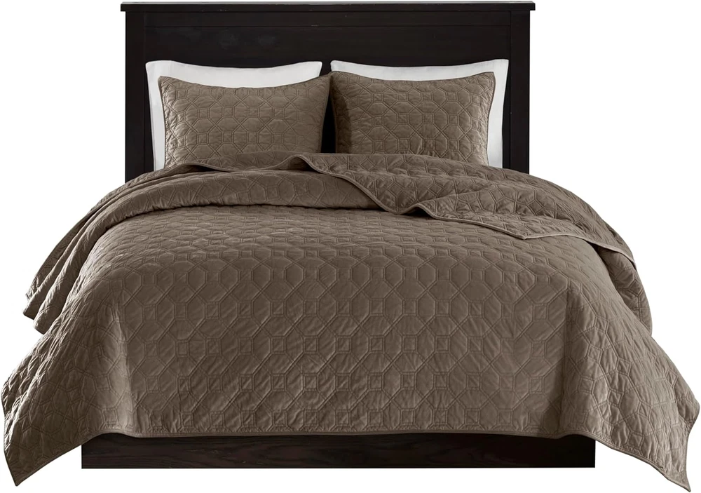Harper Velvet 3 Piece Coverlet Set Taupe 104X94 Inches King/Cal King Polyester Elegant and soft velvet coverlet set in geometric quilting technique Great for added layer for extra warmth in cold season Set includes coverlet and 2 matching shams Cotton filling for comfort and durability Embelishment : Embroidered Coverlet/Shams: 100% polyester velvet with quilted face, 85gsm microfiber back, 240gsm 90%cotton, 10%other fiber filling, prewash. 1 Coverlet:104x94" 2 King Shams:20x36+0.5"(2) MACHINE WASH COLD, GENTLE CYCLE, AND SEPARATELY. DO NOT BLEACH. TUMBLE DRY LOW, REMOVE PROMPTLY, DO NOT IRON. IF THERE IS NO FREE MOVEMENT IN THE WASHER OR DRYER, USE LARGE CAPACITY COMMERCIAL WASHER/DRYER. The Madison Park Harper Velvet 3 Piece Coverlet Set offers a casual and comfortable update to your bedroom. The polyester velvet coverlet features a soft texture with a geometric quilted design, for a rich look and feel. Matching shams pair beautifully with the coverlet to complete the quilt set. Providing a charming layering piece to your bed. Item model number MP13-3306 Style Glam/Luxury Material Velvet Assembly required No Pattern Geometric Country of Origin China Theme Geometric Department unisex-adult Number of Pieces 3 Specifications certified frustration-free Product Dimensions 104 x 94 x 0.04 inches Pillowcase Width 20 Inches Seasons All Is Discontinued By Manufacturer No Included Components 1 Quilt, 2 King Shams Item dimensions L x W x H 104 x 94 x 0.04 inches Fabric Type Polyester Item Weight 10.13 pounds Pillowcase Length 36 Inches Pillowcase Closure Depth 2 Inches Color Taupe Thread Count 75 Bedding Set Type Coverlet Set Global Trade Identification Number 00675716809522 Batteries required No Recommended Uses For Product Rectangular Bed Pillowcase Closure Width 20 Inches Product Care Instructions Machine Wash Size King/Cal King(104"x94") Shipping Fast shipping is very important for us. Our standard US shipping service is FREE. Your order will be shipped within 2-3 business days upon full payment received. Your order will be delivered within 2-3 business days after the handling time. We only ship to the confirmed PayPal address. We reserve the right to cancel any order for any reason at any time. We are not responsible for undeliverable addresses. Returns and payment We offer a 30 days return policy from checkout winning date. We allow only PayPal as payment method FeedBack Your feedback very important to us, after you get your package and you are satisfied with our service please leave us positive feedback If you have any problem with your order / any questions please before leave any type of feedback For any questions, using eBay contact system Please visit our eBay store to check out other items for sale! Thank you for shopping at our store.