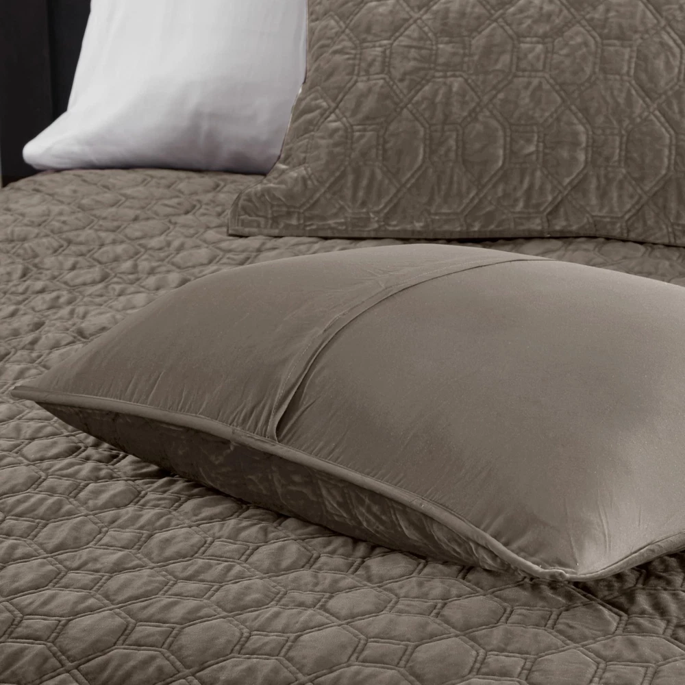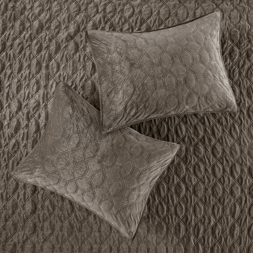 This Harper Velvet Coverlet Set is absolutely stunning! The taupe color and geometric quilting add a luxurious touch to my bedroom. The velvet is so soft, and the cotton filling keeps me cozy without being too heavy. The shams complete the elegant look, and it’s machine washable—super convenient. Perfect for adding warmth and style to any bed!