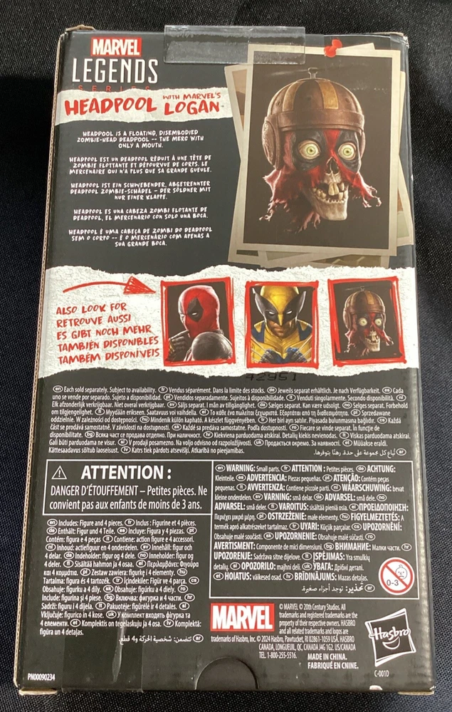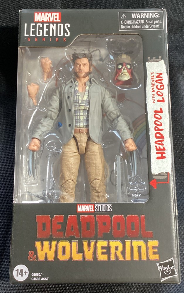 The product is a Hasbro Marvel Legends action figure set featuring Deadpool and Wolverine, specifically including the character Headpool and Marvel's Logan. This 6" figure set is from the Deadpool franchise and includes items from a mixed lot. It is made of plastic, with a multicolor design and a scale of 1:12. The action figures are based on the characters portrayed by Hugh Jackman and are targeted towards ages 14 and up.
