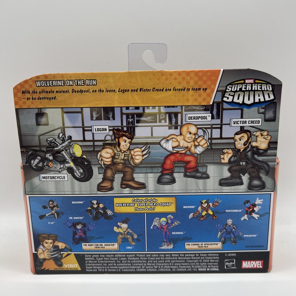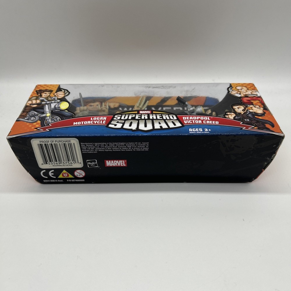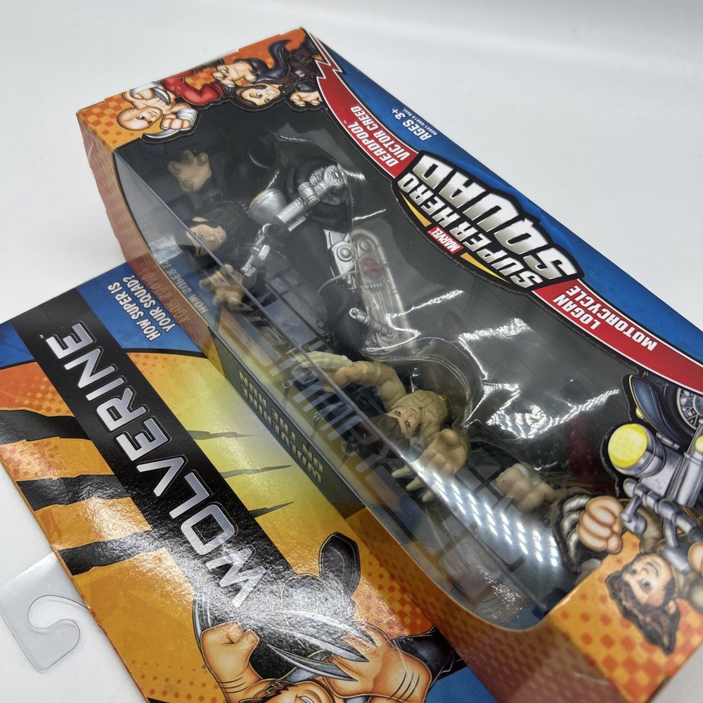The Hasbro Marvel Super Hero Squad Wolverine Logan Motorcycle Deadpool Victor Creed is an action figure set featuring characters from the Deadpool franchise. This collection includes Wolverine, Logan, Deadpool, and Victor Creed, offering fans of the superhero genre the opportunity to recreate their favorite scenes and engage in creative play. With high-quality detailing and design, these action figures are sure to be a hit with collectors and enthusiasts alike. Please look at all the pics here as are of the actual item. The item is in very nice condition with only some slight wear spots on the clear plastic front and top - see close-up pics. Feel free to reach out if additional questions and thank you for stopping by ๐
