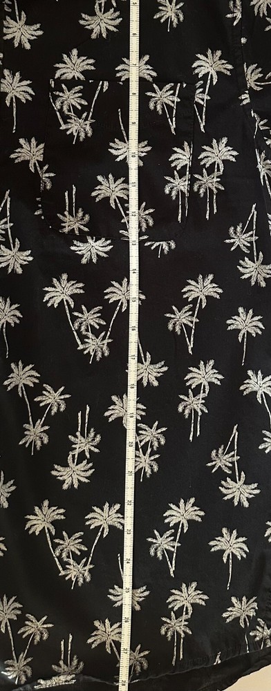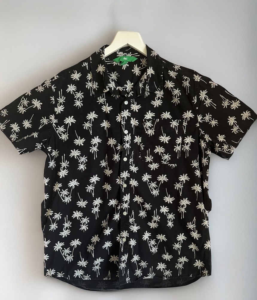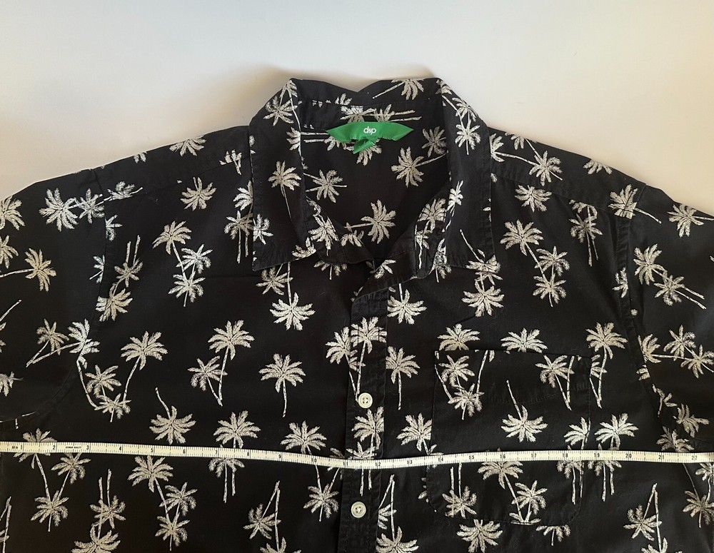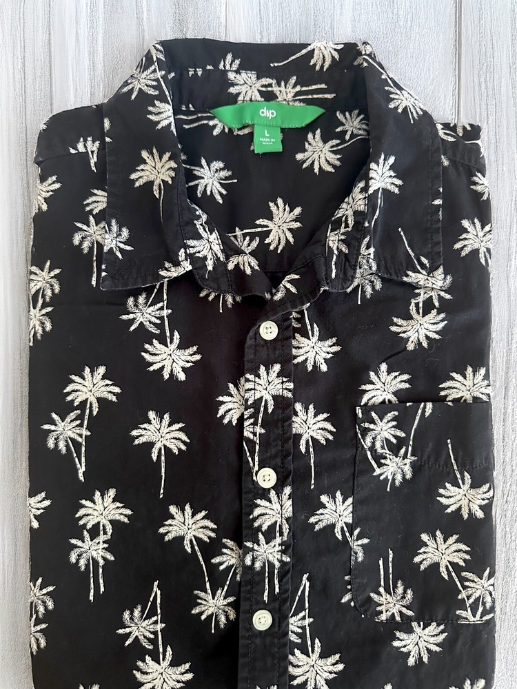 Description: Bring a laid-back island vibe to your wardrobe with this stylish DIP black short sleeve button-up shirt. Decorated with a tropical white palm tree print, this shirt is perfect for beach days, vacations, or casual summer outings. Its lightweight fabric and classic fit offer both comfort and versatility. Details: Black base with white palm tree print Front button closure Short sleeves Straight hem Ideal for casual wear, resort trips, or parties Condition: Gently pre-owned and in excellent condition. No rips, stains, or holes. Clean and ready to wear.