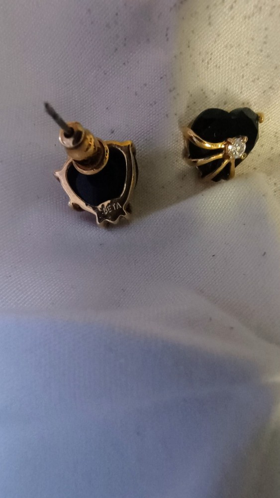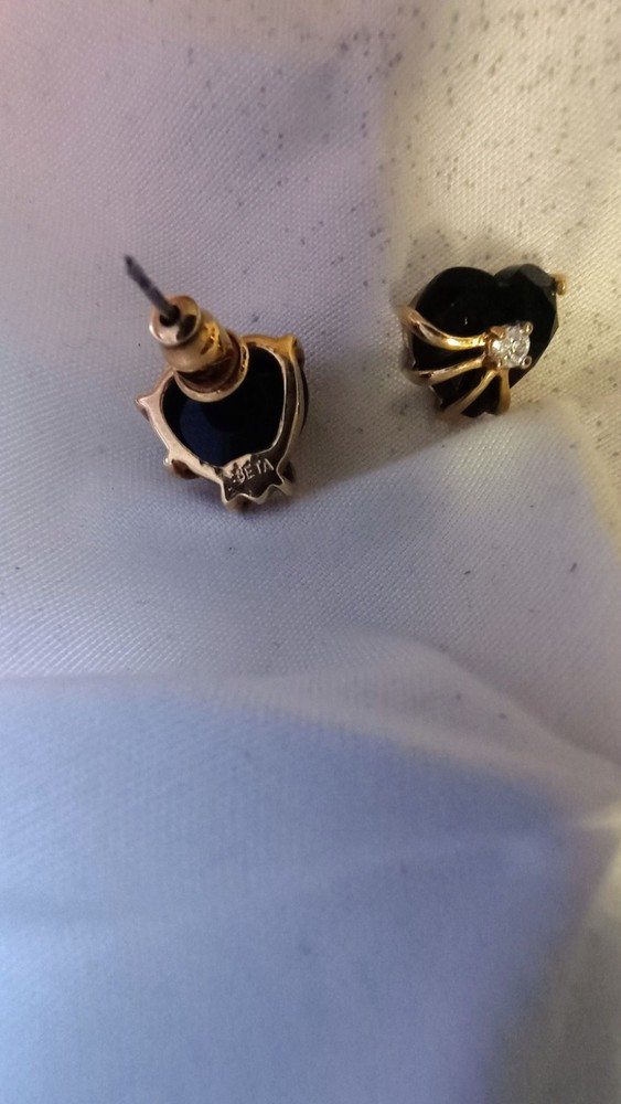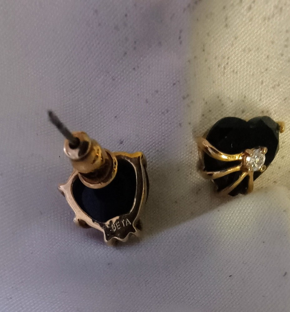 The product is a pair of heart-shaped black onyx earrings from SETA. The earrings feature black onyx as the main stone, adding a touch of elegance and sophistication to any outfit. Perfect for those who appreciate unique and stylish jewelry pieces.