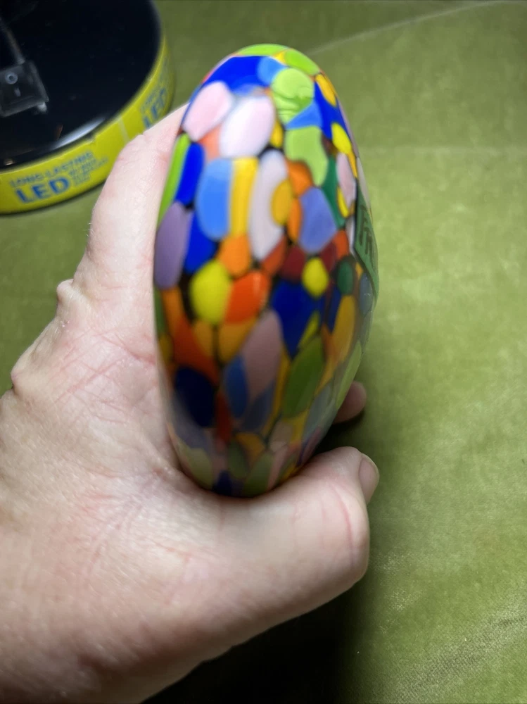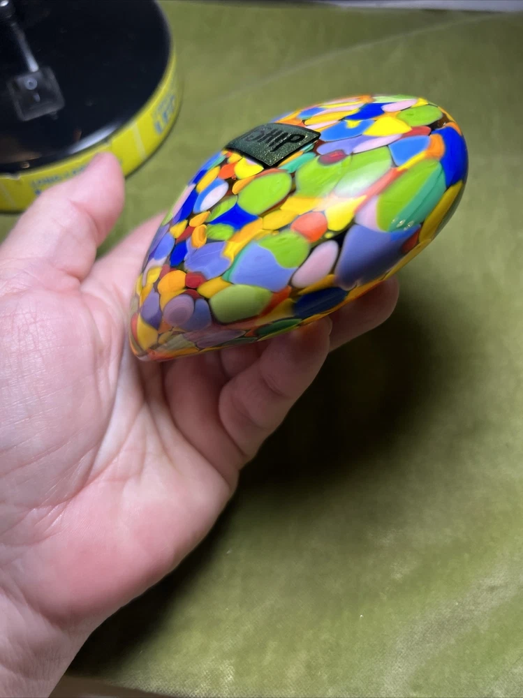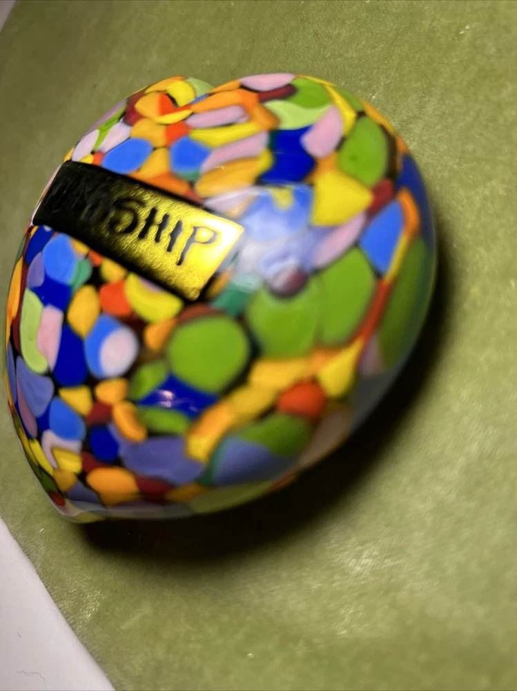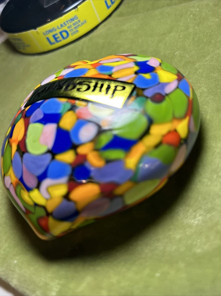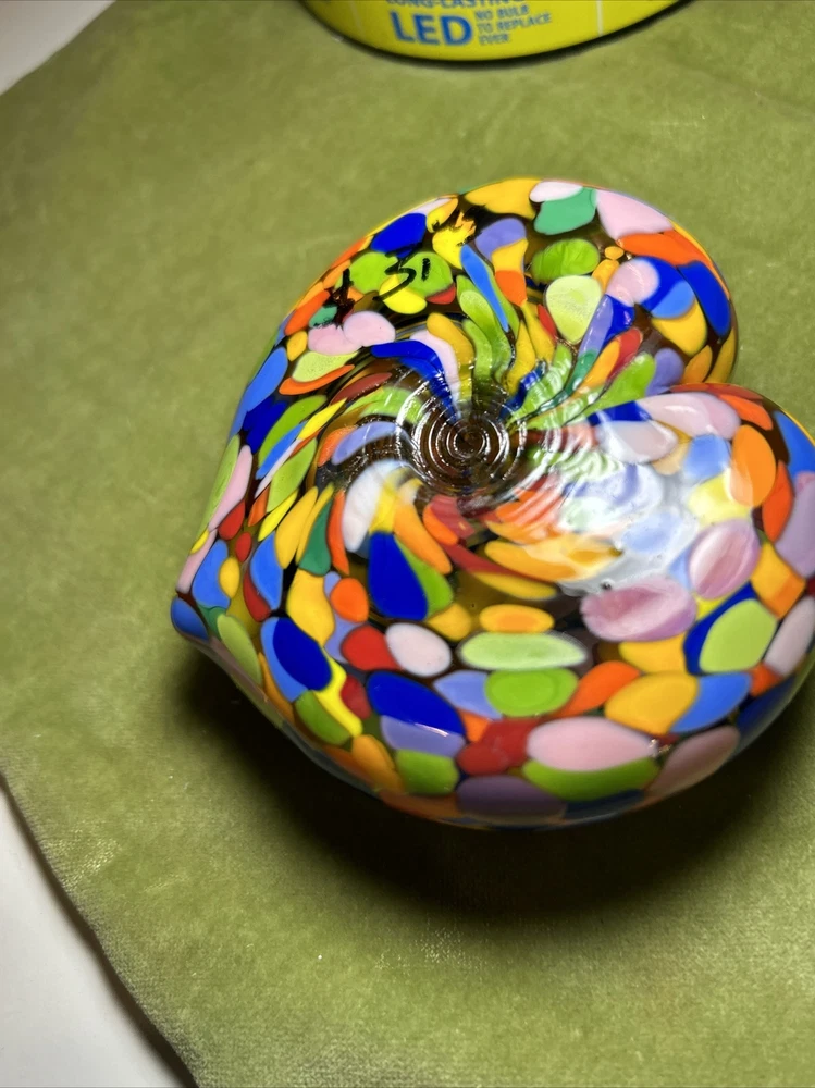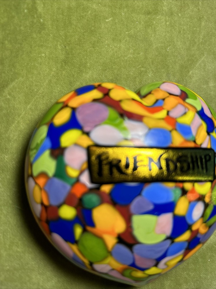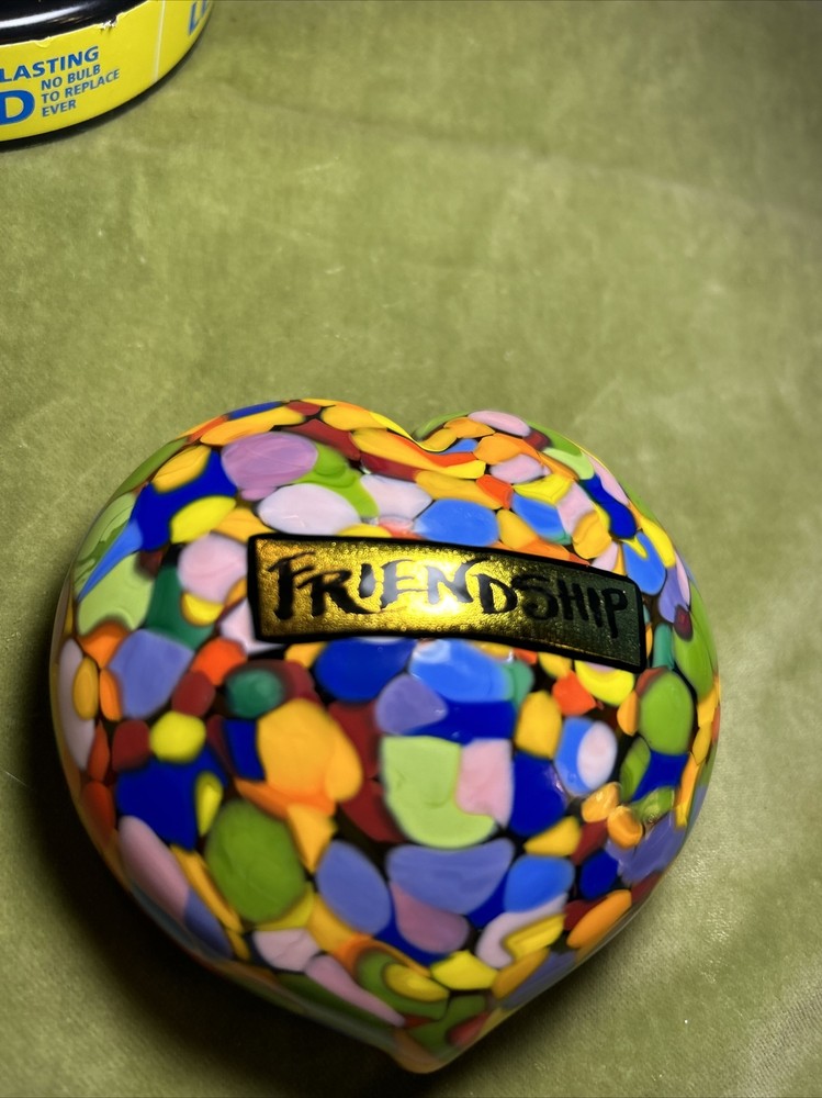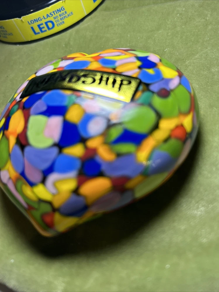 Add a touch of love and color to your workspace with this beautiful paperweight from MAD ART STUDIOS. Handmade in California, this heart-shaped glass paperweight features a stunning Millefiori pattern in a variety of colors. The glossy finish gives it a contemporary look that will complement any desk or bookshelf. Designed by RINA FEHRENSEN & MICHAEL MADDY, this original piece of art glass is perfect for paperweight collectors or as a thoughtful gift for a friend. Its unique shape and pattern make it a great conversation starter. Bring some love into your workspace with this beautiful, one-of-a-kind paperweight. Perfect gift for a FRIENDSHIP FRIEND