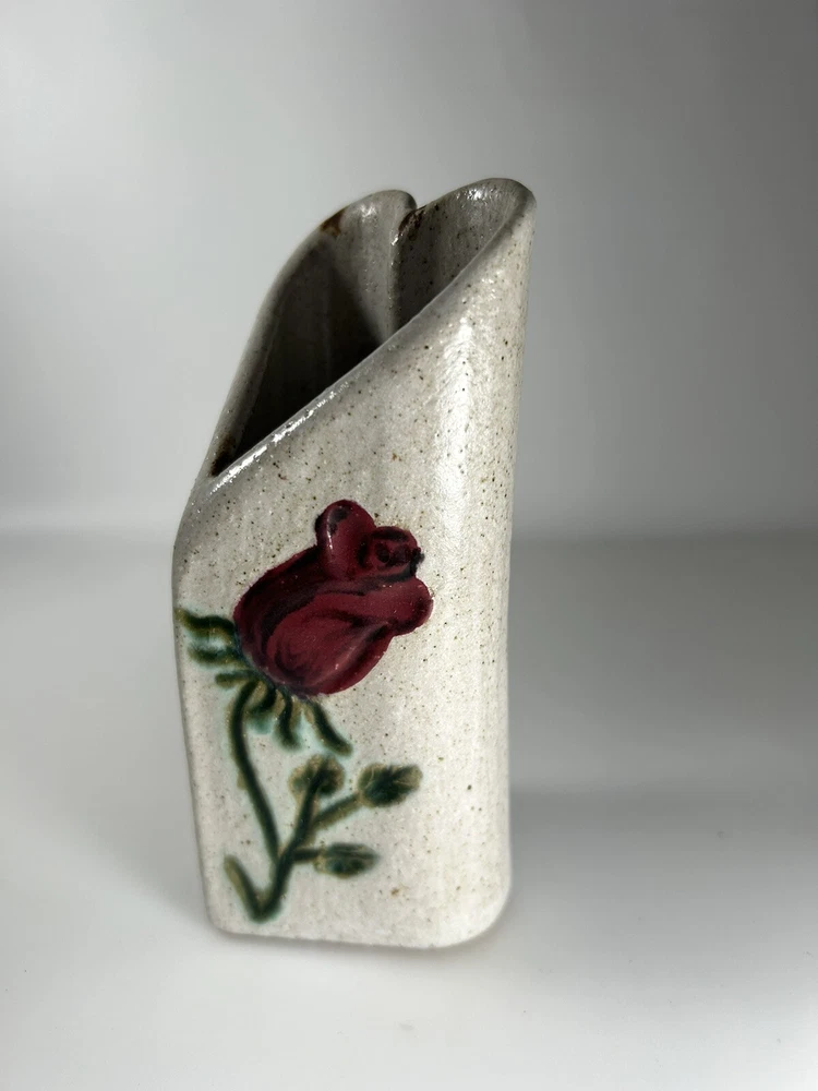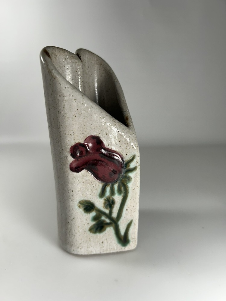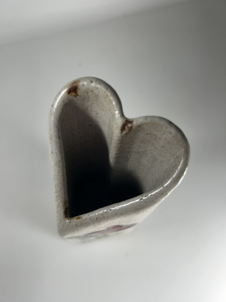 Heart Shaped Studio Pottery Vase Signed Flower Vine Artist 5” Handmade...