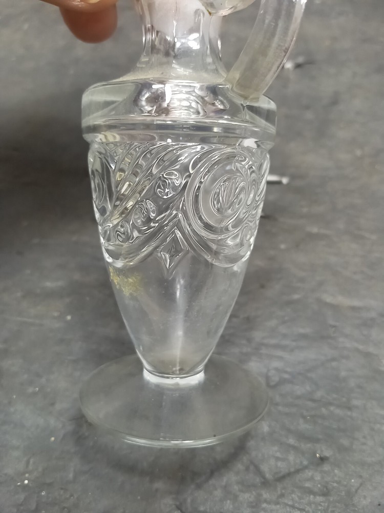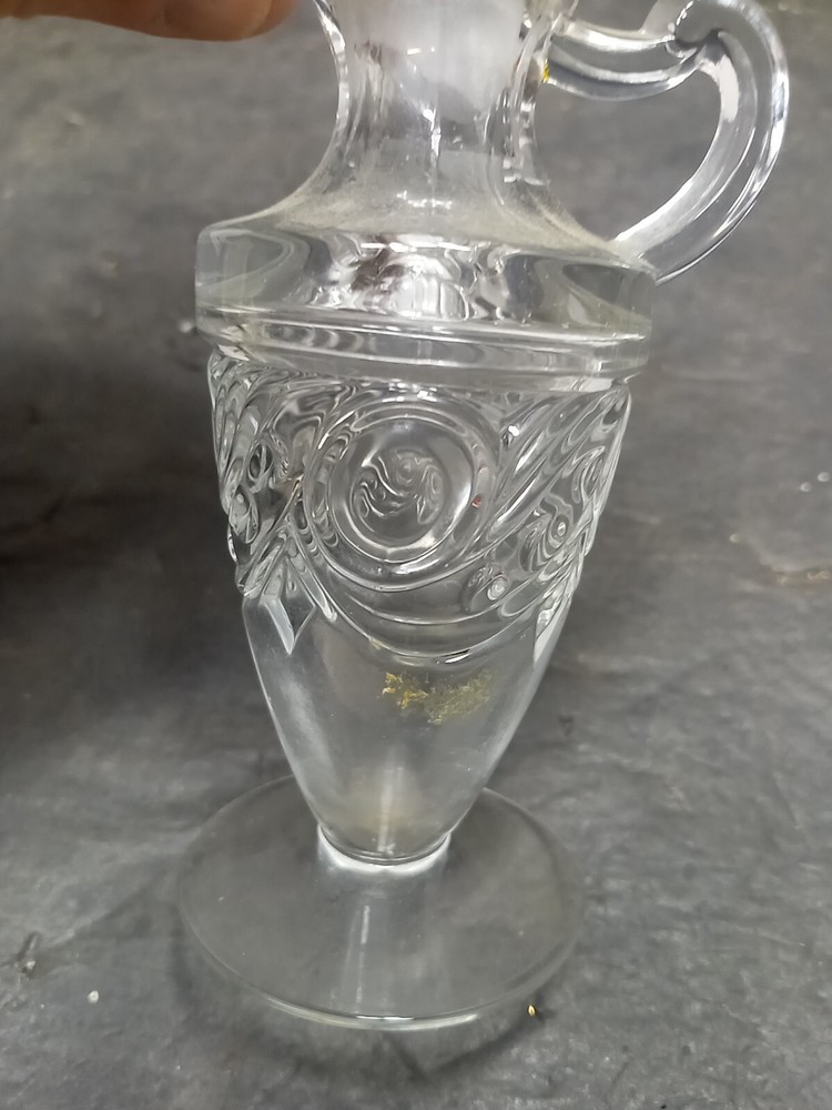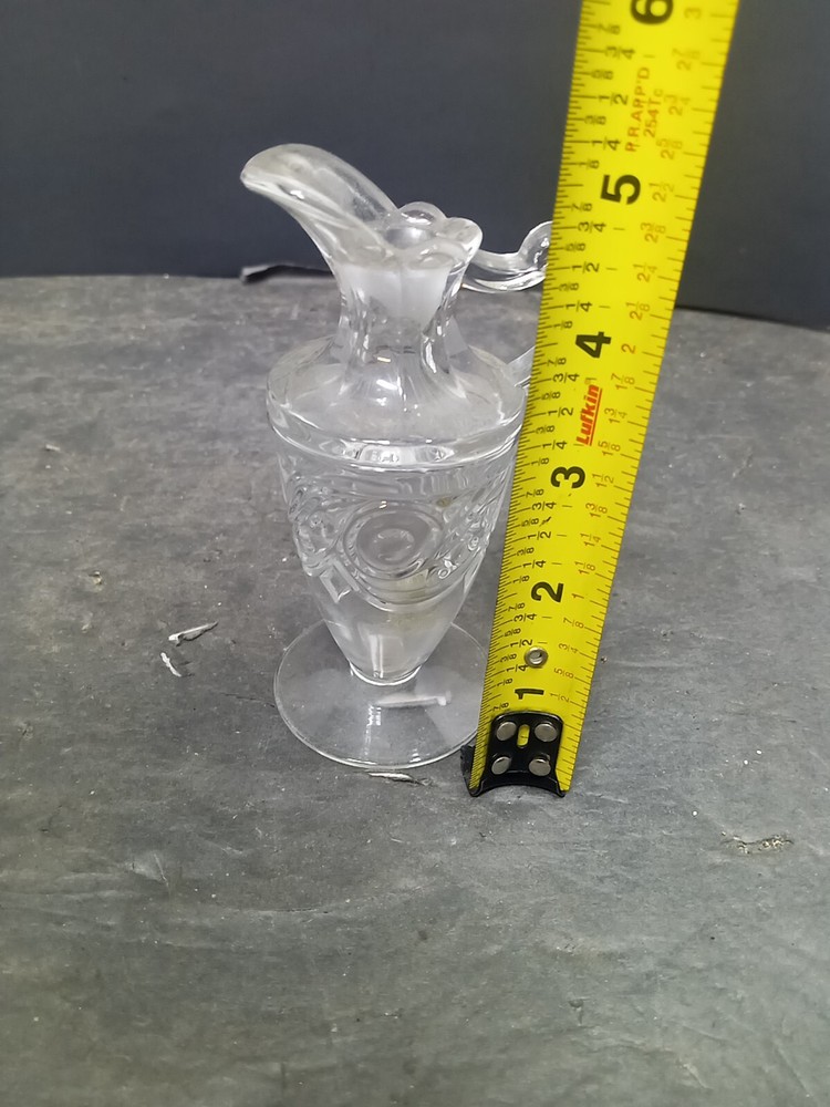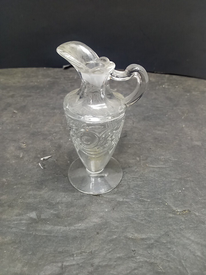 ❤️❤️❤️ Thank You The Mystery Box 2 No Stopper This vintage glass cruet from Heisey's "Ipswich" collection is a beautiful addition to any antique dining set. With a clear glass body and elegant glass production style, this piece is sure to catch the eye of any collector. The cruet was manufactured in the United States between 1929 and 1954, making it a rare find for those who appreciate vintage glassware. The cruet is designed without a stopper and features the Heisey brand as well as the Ipswich pattern. It is perfect for serving oils, vinegars, or other condiments and will add a touch of sophistication to any table setting. This item is a must-have for any lover of antique glassware and is sure to be a conversation starter at any dinner party. Shelf