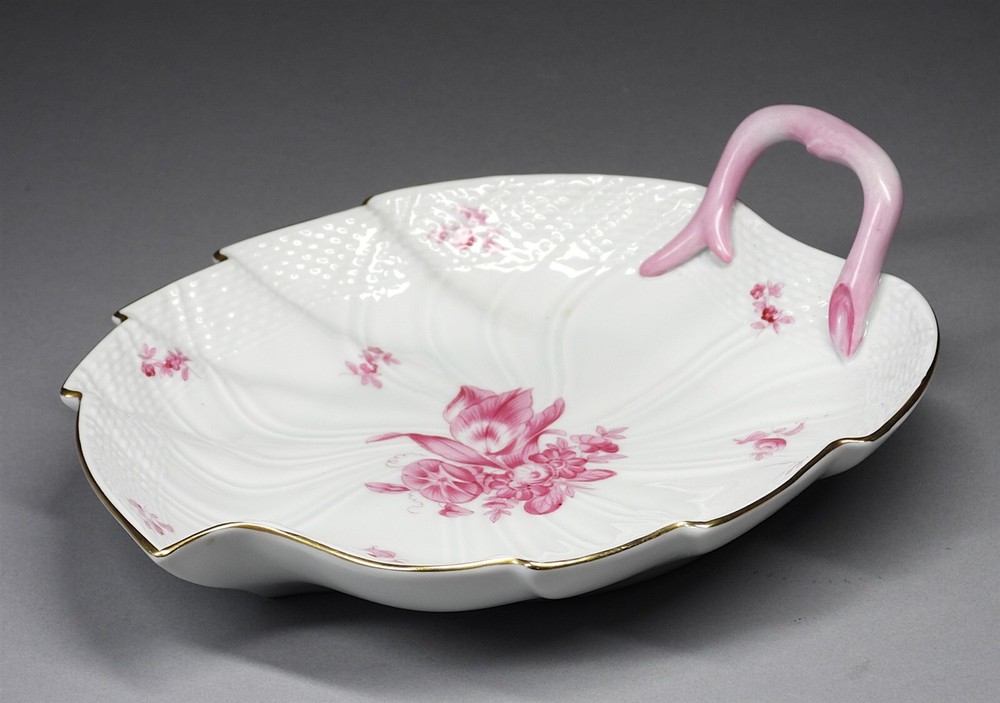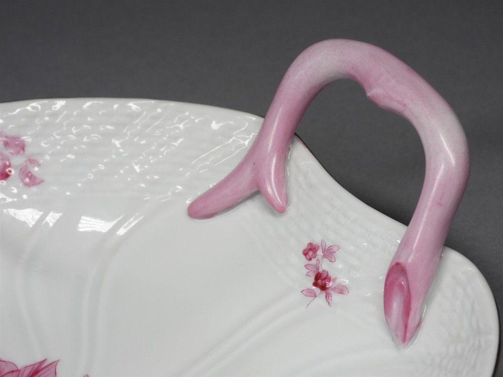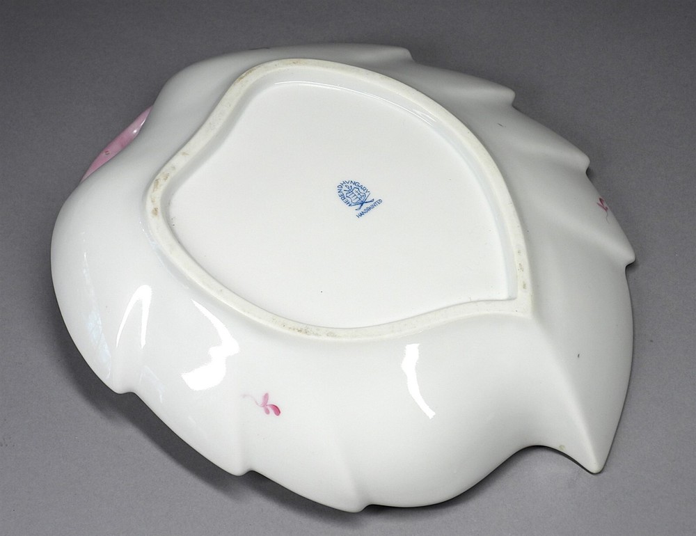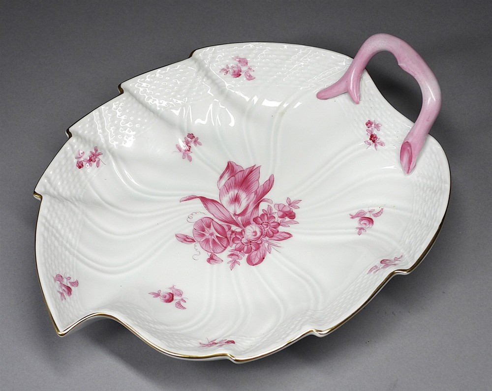 Welcome to BKCranston! Please take a moment to read the description, condition and browse the photos. Description: A finely decorated Herend porcelain leaf form dish with pink hand painted floral design on a basketweave molded plate. The decoration is beautifully painted with smaller accented florals scattered around, even on the back side. It is further embellished with gilt trimmed rim. Marked with blue Herend mark. Measures approx.; 9 3/8" x 7 5/8" x 2 1/2" (23.81cm x 19.36cm x 6.35cm) Condition: Never used, overall very good condition, no chips, cracks or repairs. Please view all photographs as they are part of the condition report. Be sure to check out my weekly auctions for other unusual and interesting estate finds and collectibles. I have an ever growing selection of Buy-it-Now items and eBay auctions added weekly. I am are happy to combine purchases to save you money in shipping charges. Please take a minute to read below: Unconditional 30 day return policy. If for any reason you are not happy with your purchase, please contact us immediately. We are here to rectify any issues that may arise for all of our customers!!! We strive for only 100% positive feedback! My name is Kevin Bruneau and I have been in the fine arts and collectibles business for over 30 years. I've owned antique shops, auction houses, a consignment shop, and even did a TV reality show hunting down collectible treasures. Today I travel hundreds of miles per week to find interesting pieces to bring to my BKCranston eBay site. Most items are sourced from local house-calls, auctions, and estate tag and yard sales. My interests are broad so you will never know what I will list next. It could be an old master paintings or a baseball card collection. Be sure to check in often, as my store and auction offerings are forever growing and changing with fun and interesting new inventory. Powered by SixBit's eCommerce Solution