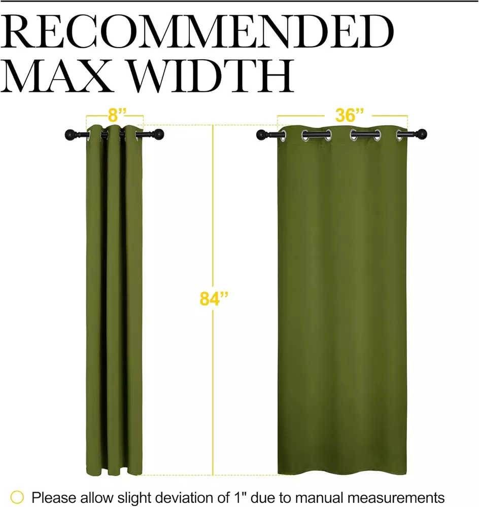 Menu Other Items Feedbacks About Us Contact Us Add To Favorites Holiday Christmas Decor Thermal Insulated Solid Grommet Blackout Curtains/Drape for Living Room (1 Pair, 42 by 84 Inches, Olive Green) Polyester READY MADE: Set includes 2 BLACKOUT PANELS of 42" wide x 84" length with 6 grommets top each. Quality fabric without liner feels soft and heavy. SERVE WELL: Curtains impede 85%-99% light and UV rays(Dark color curtains work well). Noise-reducing, better TV viewing thanks to the innovative triple weave technology. ENERGY SMART: Triple weave blackout fabric balances room temperature by insulating against summer heat and winter chill. Protect your furniture, floors, and artwork from the ravages of the sun, the drapes will pay for themselves off over time. GOOD TO GO: Thread trimmed and wrinkle-free, ring (1.6-inch inner diameter) fits easily with standard curtain rods. All sets for you to put them up right away. EASY TO MAINTAIN: NICETOWN blackout curtains are made to last. Machine washable in cold water, tumble dry. Quick ironing or steam clean when needed. Visiting the NICETOWN store, find out your favorite curtains. Product Description HEAVY-DUTY SILVER RING Suitable for most curtain rods, and easily for hanging and sliding. HIGH DENSITY SUTURE The curtain fabric looks more exquisite and worthwhile. SAME FABRIC FRONT AND BACK The same fabric for both sides makes the curtain a simple style. TRIPLE WEAVE TECHNOLOGY Provide you with a perfect shading performance of about 50%-99% Blackout. DO WELL IN THERMAL INSULATED After insulating with the curtain, the temperature drops a lot. 1 SILVER GROMMET 2 HIGH DENSITY SUTURE 3 FRONT AND BACK 4 TRIPLE WEAVE FABRIC 5 THERMAL INSULATED TYPES OF CURTAIN TOP FOR NICETOWN BLACKOUT CURTAIN GROMMET TOP Make curtain orderly, easy to install and slide, so that let the room elegant. Recommended with no greater than a 1.6-inch rod for maximum movement. ROD POCKET Make some small pleats that give a feeling of cozy and classic. Recommended with no greater than a 1.7-inch rod for maximum movement. BACK TAB Give 3 options to hang curtains which is a perfect choice for window decoration. Recommended with no greater than a 1.7-inch rod for maximum movement. TOP TAB Creates casual elegance for your house, which makes the curtains easy to install and slide. Recommended with no greater than a 1.9-inch rod for maximum movement. TWIST TAB Not only creates rich, deep folds for a professional look, but also makes this panel easy to hang, open and close. Recommended with no greater than a 1.9-inch rod for maximum movement. PINCH PLEATED More gathered than other headings and have permanent sewn-in pleats for a more luxurious. Recommended with no greater than a 1.9-inch rod for maximum movement. CLASSIC AND POPULAR COLOR RECOMMENDATIONS COLOR SHADING DISPLAY THE COLOR OF THE ACTUAL ITEM MAY VARY SLIGHTLY IN DIFFERENT ENVIRONMENT The video showcases the product in use. The video guides you through product setup. The video compares multiple products. The video shows the product being unpacked. The video showcases the product in use. The video guides you through product setup. The video compares multiple products. The video shows the product being unpacked. Item Specification Item model number _Blackout_Petit Style Contemporary Number of Items 2 Pattern Solid Country of Origin China Package Weight 1.27 Kilograms Theme Art Opacity Blackout Inches Unit Count 1.0 Count Room Type Kitchen, Bedroom, Living Room, Home Office, Dining Room Product Dimensions 84"L x 42"W Batteries required No Material Polyester, Polyester Blend Top Style Grommet Volume 1 Milliliters Model Name NTGMBLKSLD2-42ALL3 Seasons Summer Is Discontinued By Manufacturer No Specific Uses For Product Living Room, Bedroom, Home Theater Included Components Grommets, Curtain Rod Curtain Form Drapes Perfume Unscented Item Weight 2.43 pounds Size 42"W x 84"L (Pack of 2) Compatible with Rod Size 1.6 Inches Occasion Christmas Special Feature Thermal Insulated, Soundproof, Wrinkle Free, Blackout Antibacterial treatment Thermal Hanging Method Grommet Color Olive Recommended Uses For Product daytime sleep, home theaters, energy efficiency, light-sensitive individuals, noise reduction, temperature balance Fabric Type Polyester Product Care Instructions Machine Wash in Cold Water, Tumble Dry Number of pieces 2 Dimensions Shipping Returns Additional Info Product Dimensions: 42.0 "w x 84.0 "w. Weight: 2.43 lb Fast shipping is very important for us. Our standard shipping service is FREE. Your order will be shipped within 1-3 business days upon full payment received. Most items are delivered within 3-5 business days, however, please allow 3-10 business days. We are shipping only to USA. We only ship to the confirmed Paypal address. We reserve the right to cancel any order for any reason at any time. We are not responsible for undeliverable addresses. We offer a 30 day return policy from checkout winning date. Your satisfaction is guaranteed! If for any reason you are unhappy with your item, just return it within 30 days for a full refund, minus shipping cost. Please contact us prior to initiating a return so that we can issue you a refund authorization. Items defective upon receipt must be packaged in their retail packaging as if new and returned with a detailed description of the problem. Return shipping fees are not refundable. We reserve the right to decline any returns if the above guidelines are not followed. All of our items, unless otherwise stated, will only run on 120 volts. Please check to make sure your country complies with these specifications. If you have a problem or question regarding your transaction please contact us before leaving any type of feedback. We will work with you to resolve any problem you may have.