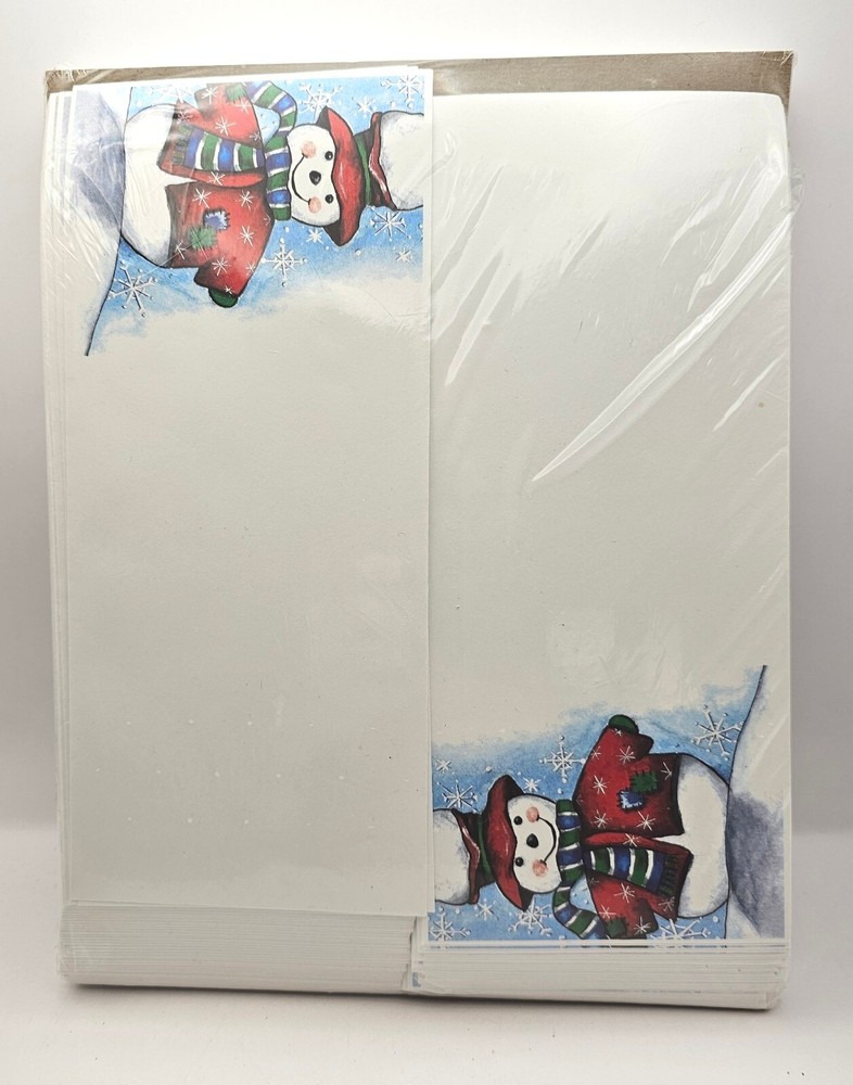 Holiday Stationery by Madison Park Greetings 200 ~ 8.5" x 11" Printed Premium Sheets + 75 #10 Matching Envelopes New & Sealed Perfect for Laser & Injet Printers Beautiful Holiday Snowman Design Very Rare Vintage Stationary to Find