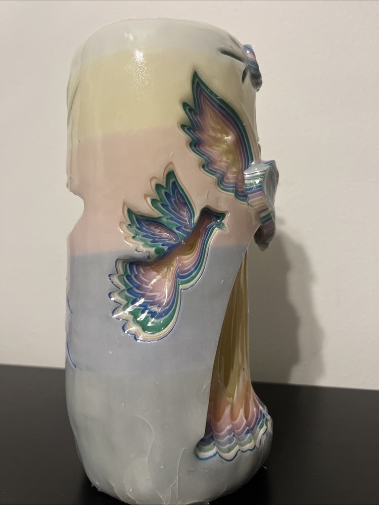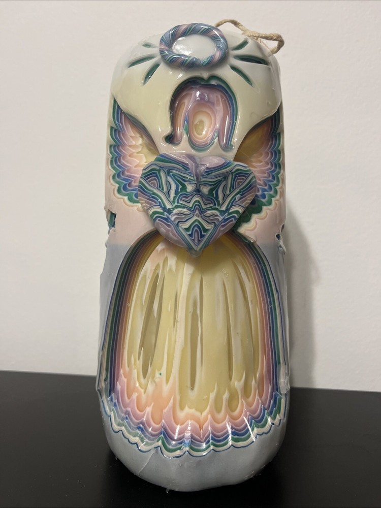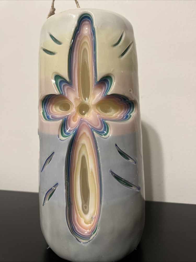 This Holland House Hand Carved Rainbow Angel Cross Dipped Wax Candle is a beautiful addition to any home decor. The candle is crafted with intricate carvings and a wax finish, creating a stunning visual effect. Measuring 8 inches in height and 3.5 inches in width, this large candle is perfect for adding a touch of elegance to any room. The candle features a lovely rainbow angel cross design, making it a perfect choice for weddings, anniversaries, funerals, or as a decorative piece for Christmas. The unscented candle is handmade in the United States. With its timeless design and high-quality craftsmanship, this candle is sure to be a cherished addition to any collection.