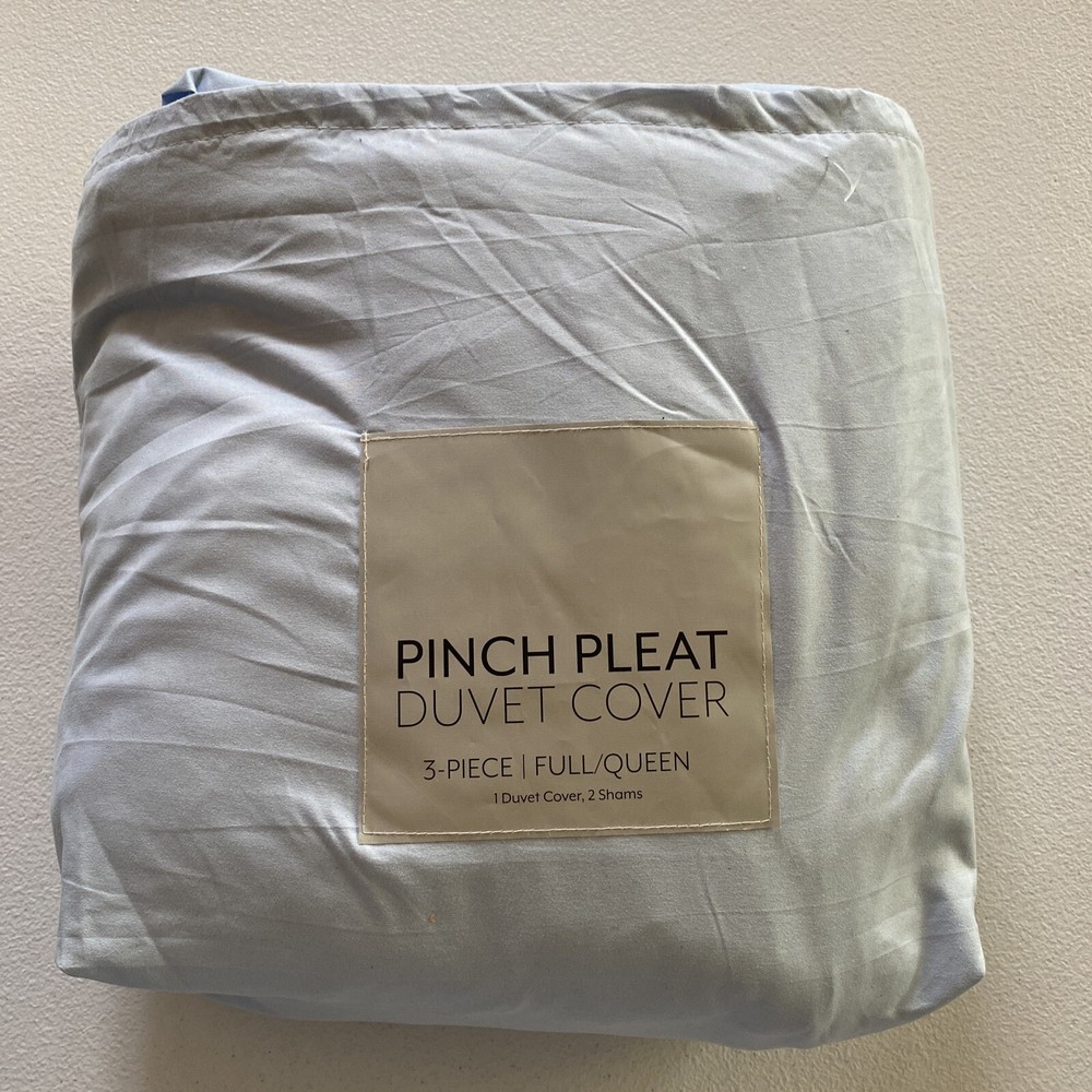 Home Collection Premium Ultra Soft 3PC Pinch Pleat Duvet Cover Set Queen, Blue. Never used. Store display item. Item has been refolded therefore it might have some wrinkles. Package missing tie....