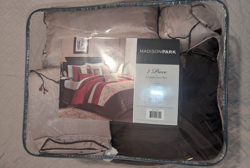 Experience the elegance of the Home Essence Monroe 7 Piece Embroidered Comforter Set, designed to transform your king-size bedroom into a contemporary sanctuary. With its rich brown hue and sophisticated embroidery, this set brings a touch of luxury to any space. The collection includes a comforter, bed skirt, pillow sham, and pillows, all boasting the same chic style that promises to enhance your bedding ensemble.Crafted for all-season comfort, the set's materials ensure a cozy yet breathable environment, ideal for year-round use. Each piece is meticulously made in China, reflecting the quality and attention to detail that the Madison PARK brand is known for. Complete your bedroom's look with this stylish and inviting bedding set that promises to complement your decor and provide endless nights of restful sleep.