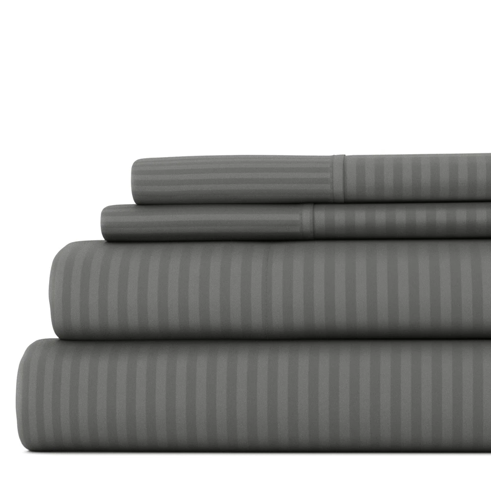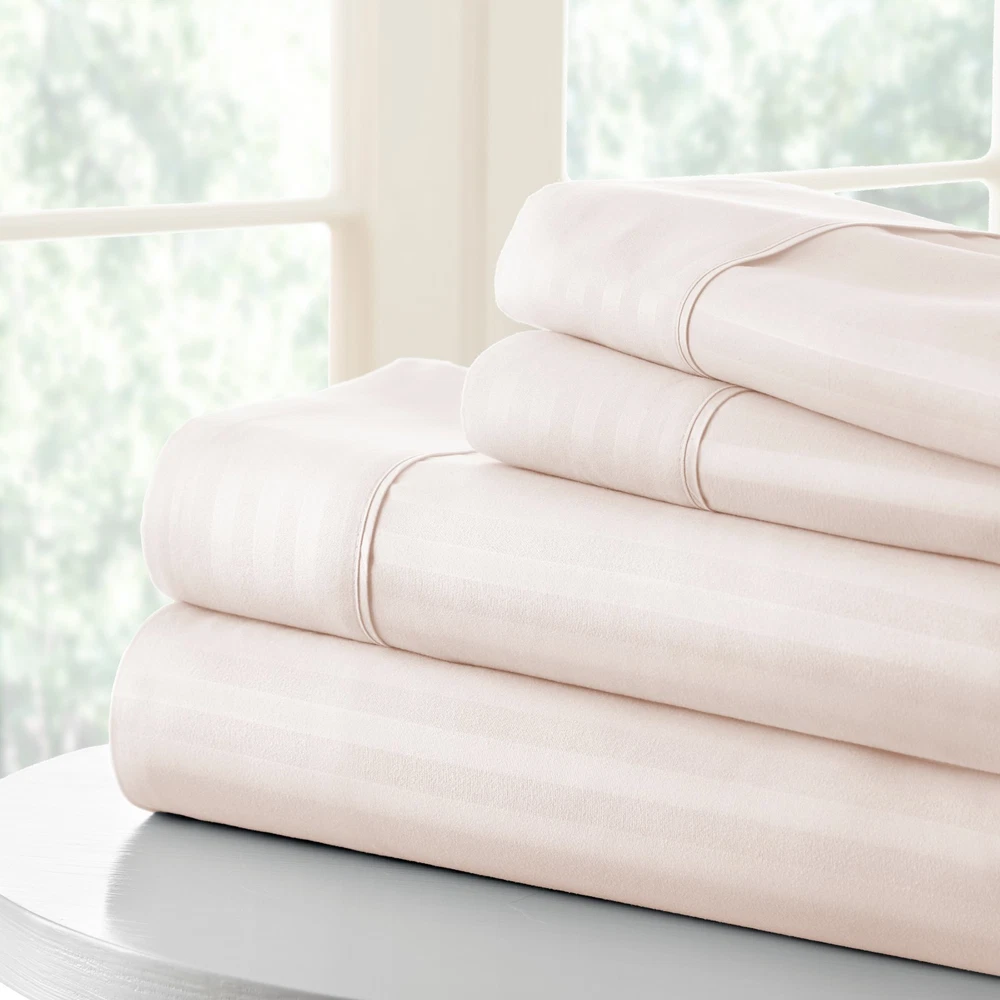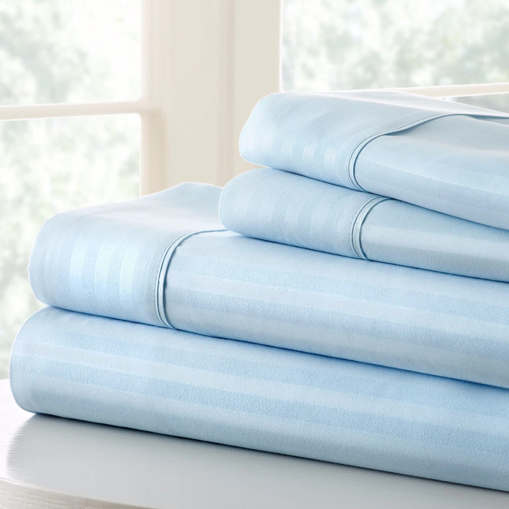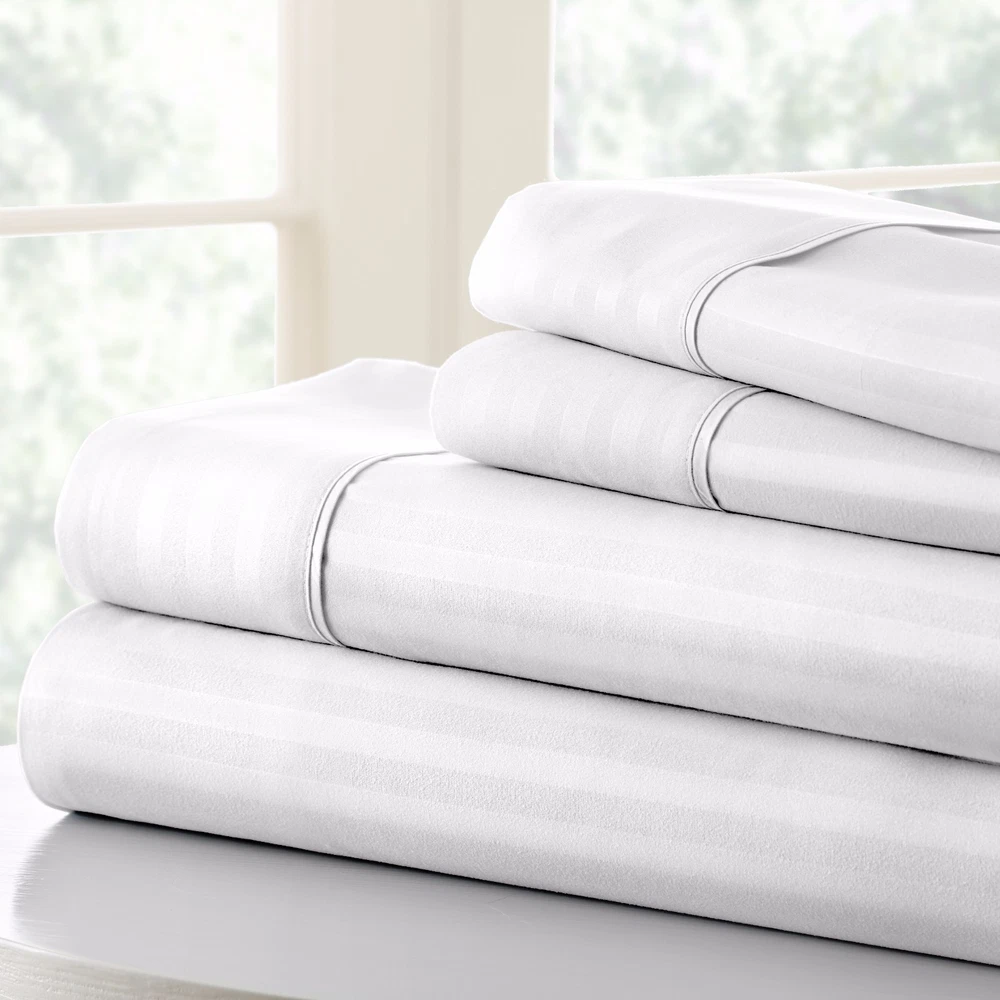 Home Premium Striped Bed Sheet Set Sleep is essential to your life, and it’s time to get a bedding that’s just as important. Our bedding is so soft, you won’t want to get out of bed. And with our durable microfiber, you won't have to worry about your comforter wearing out in 5 years or less. Soft as a cloud, and surprisingly durable, our bedding set is the perfect way to make your bedroom look like a five-star hotel. With top-of-the-line quality materials, it is easy to see that these bed sets are so much more than just an investment. Features Experience the same softness and durability that 5 Star Hotels have used for years! The SoSoft Collection 6-piece bed sheet set is designed with your comfort in mind. Made of the finest imported double-brushed microfiber yarns creating a new standard in softness and breathability, this 4-piece sheet set will make it incredibly hard to get out of bed in the morning. Our premium yarns are two times more durable than cotton, completely wrinkle free and perfect for all seasons. Material: Made with Ultra-Soft Double Brushed Microfiber fabric for outstanding comfort. Superior weave for durability and buttery soft touch. Hypoallergenic and resistant to dust mites. Easy Care: Machine wash cold, Tumble dry low, Fade Resistant, Wrinkle Free, No Ironing Necessary. Package Includes: 4 piece set includes 1 Flat Sheet, 1 Fitted Sheet, and 4 Pillowcases (Twin and TwinXL sets come with 1 Pillowcase) . What is included / Dimensions 1 Twin Fitted Sheet: 39’’W x 75’’ L +16 1 Twin Flat Sheet: 66’’W x 96’’L 1 Standard Pillowcase: 20’’W x 30’’ L 1 Full Fitted Sheet: 54" W x 75" L + 16" 1 Full Flat Sheet: 81" W x 96" L 2 Standard Pillowcases: 20’’W x 30’’ L 1 Queen Fitted Sheet: 60" W x 80" L + 16" 1 Queen Flat Sheet: 90" W x 102" L 2 Standard Pillowcases: 20’’W x 30’’ L 1 King Fitted Sheet: 78" W x 80" L + 16" 1 King Flat Sheet: 102" W x 108" L 2 King Pillowcases: 20’’W x 40’’ L 1 Calking Fitted Sheet: 72" W x 84" L + 16" 1 Calking Flat Sheet: 105" W x 102" L 2 King Pillowcase: 20’’W x 40’’ L Contact us We can be contacted at any time through eBay messages if you have any questions, comments or product requests. We will respond to you within 24 hours and do our best to help you out! We encourage our customers to contact us with any questions or concerns! We'd like to be sure you are completely satisfied with your purchase. Returns ienjoy Home offers a 30-day money-back guarantee on all items. Free return shipping. If you need to return an item for a refund, please contact us within the return period. All ienjoy Home sales include our 30-day money-back guarantee. Items may have additional warranty coverage. To determine if your purchase is covered by our manufacturer warranty, please contact us for further assistance. Shipping All orders ship within 1 business day. Standard shipping is FREE on all items shipped within the United States. For express and international shipping, please contact us for further assistance. (Unfortunately we do not ship to Alaska or Hawaii). Please keep in mind, if placed over the weekend your order will ship out the following business day. When your order ships, you will be emailed tracking information. International shipping is handled by eBay's Global Shipping program. For more information please contact eBay directly. Recomended Items from Kaycie Gray store Comforter Kaycie Gray Hotel Collection Luxury 8PC Comforter set $25.99 Luxury Sheets Rayon From Bamboo Luxury 4PC Soft Sheets Set by Kaycie Gray Hotel Collection $44.99 Solid Sheets Luxury 4PC Sheets Set Comfort by Kaycie Gray Hotel Collection $16.99 Comforter set Kaycie Gray Fashion Ultra Soft Desert Stripe 3PC Reversible Duvet Cover $17.99 Visit our store for more products Kaycie Gray by iEnjoy Home .